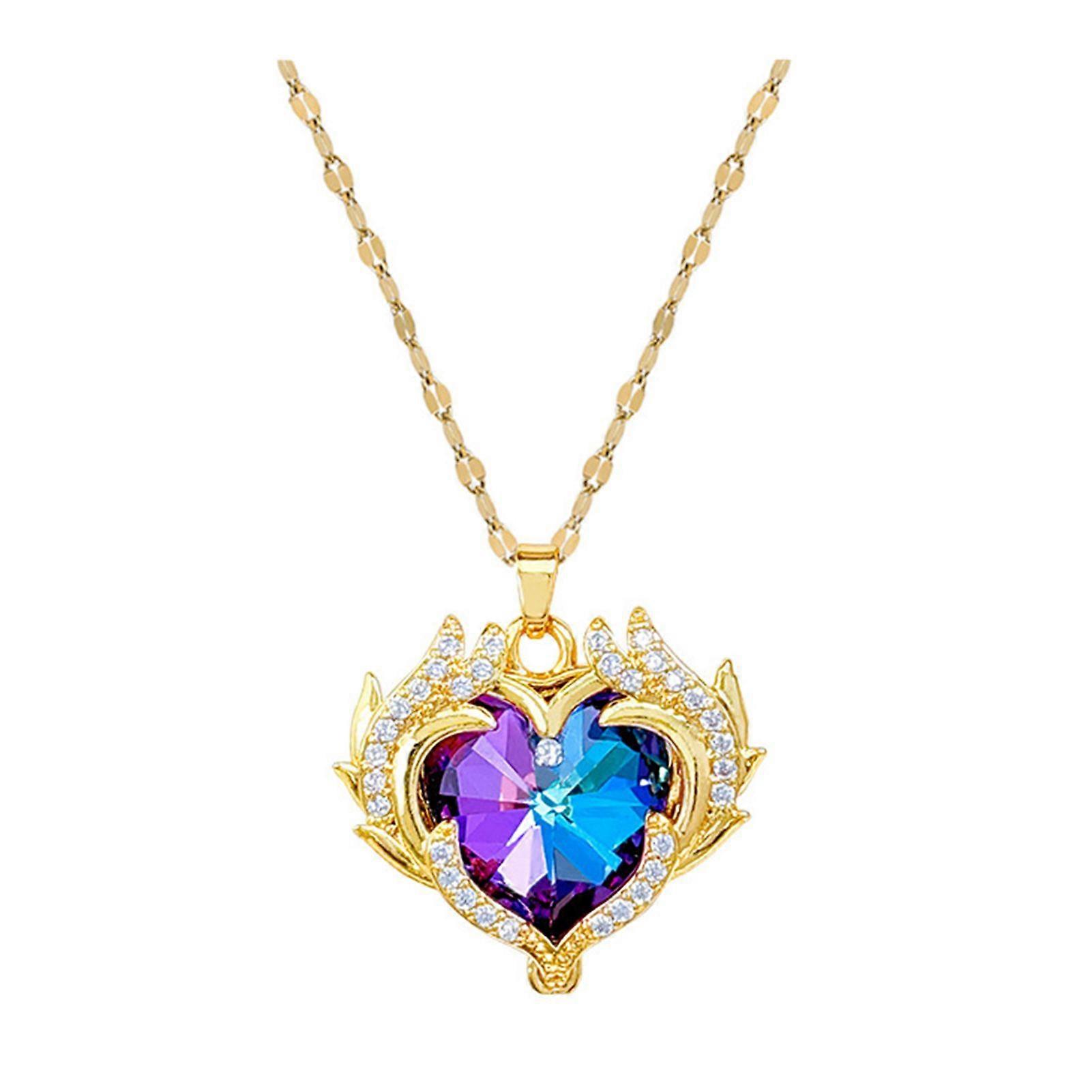 Women Love Heart Pendant Necklace Adjustable Design Non-Fading Dazzling Colorful Necklace Wedding Jewelry Gift