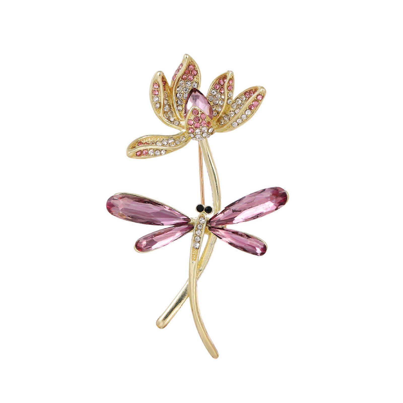 Lotus Dragonfly Brooch Exquisite Zinc Alloy Rhinestone Pin Sweaters Hats Bags Badge Multi-Functional Accessory