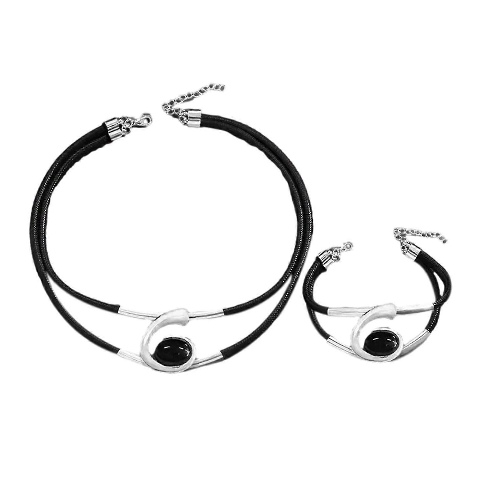 2Pcs/Set Necklace Bracelet Set Sparkling Rhinestones Inlaid Jewelry Set Adjustable Length Necklace Bracelet Set