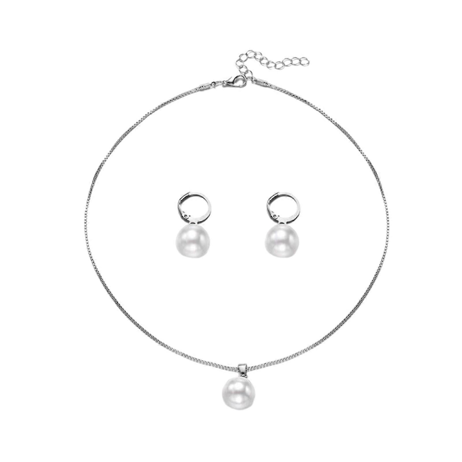 Faux Pearl Jewelry Set for Women White Faux Pearl Necklace Hoop Earrings Set for Bride Bridesmaid Wedding Accessory