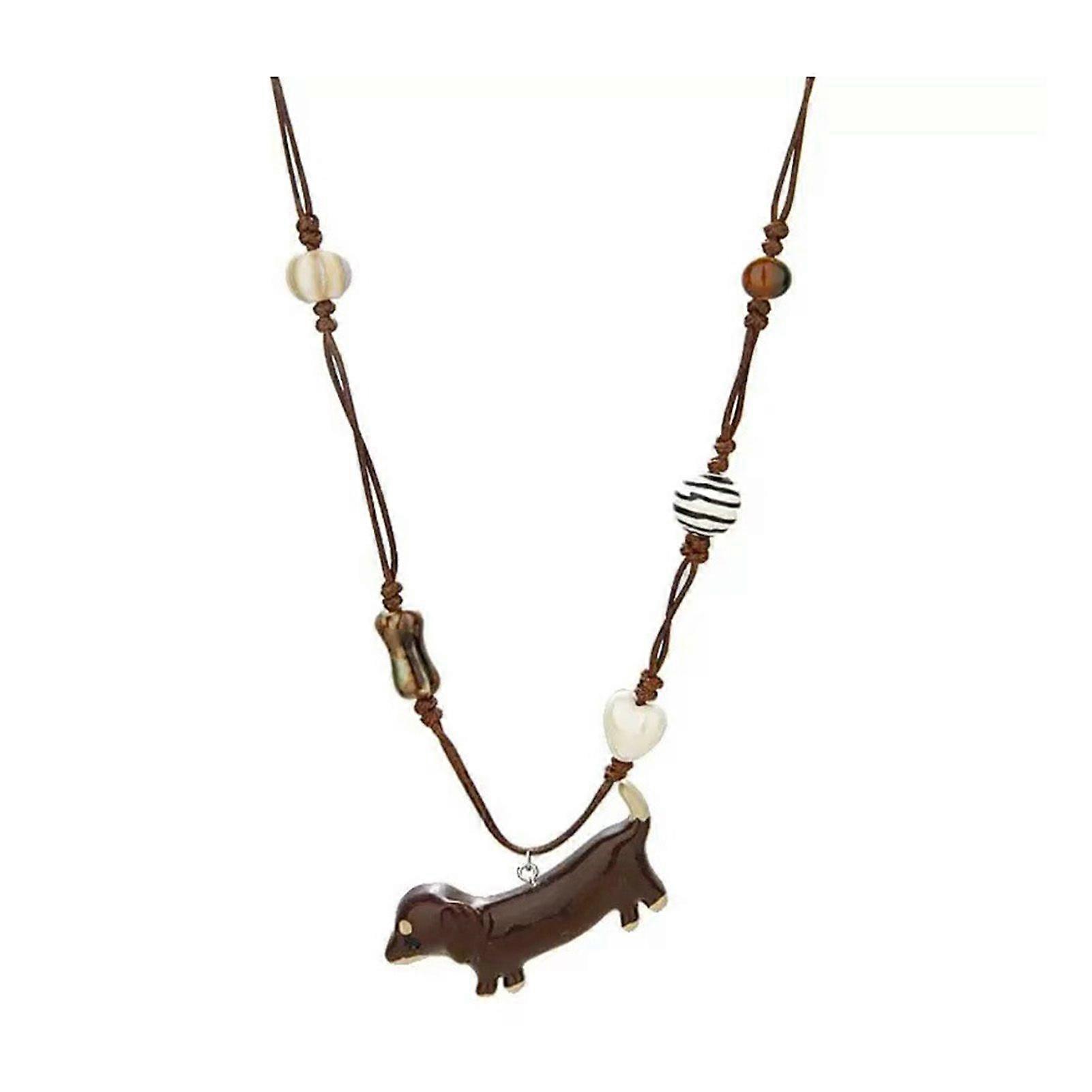 Dachshund Pendant Necklace Ceramic Mini Dog Charm Necklace Girls Retro Necklace Gift for Dog Lovers Birthday Anniversary