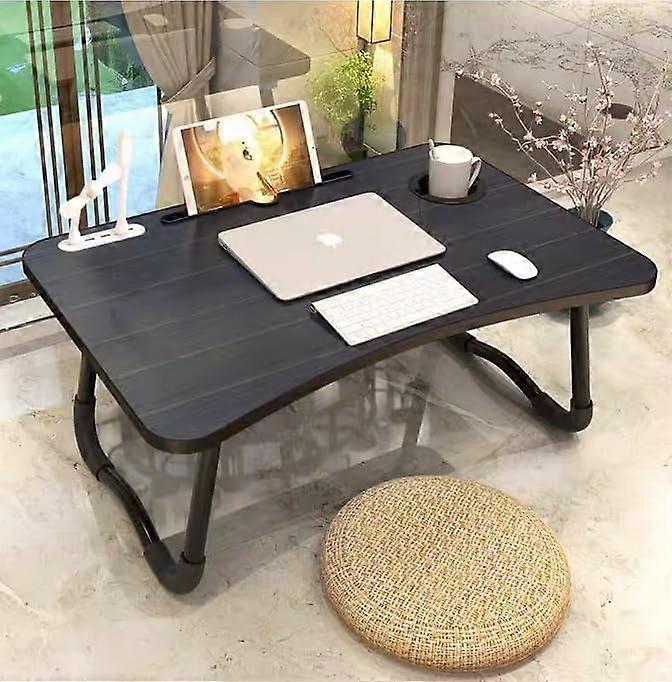 Foldable Laptop Table with USB Ports, Cup Holder & Drawer - Portable Lap Desk for Sofa, Floor, Work, Study, Breakfast (Black)