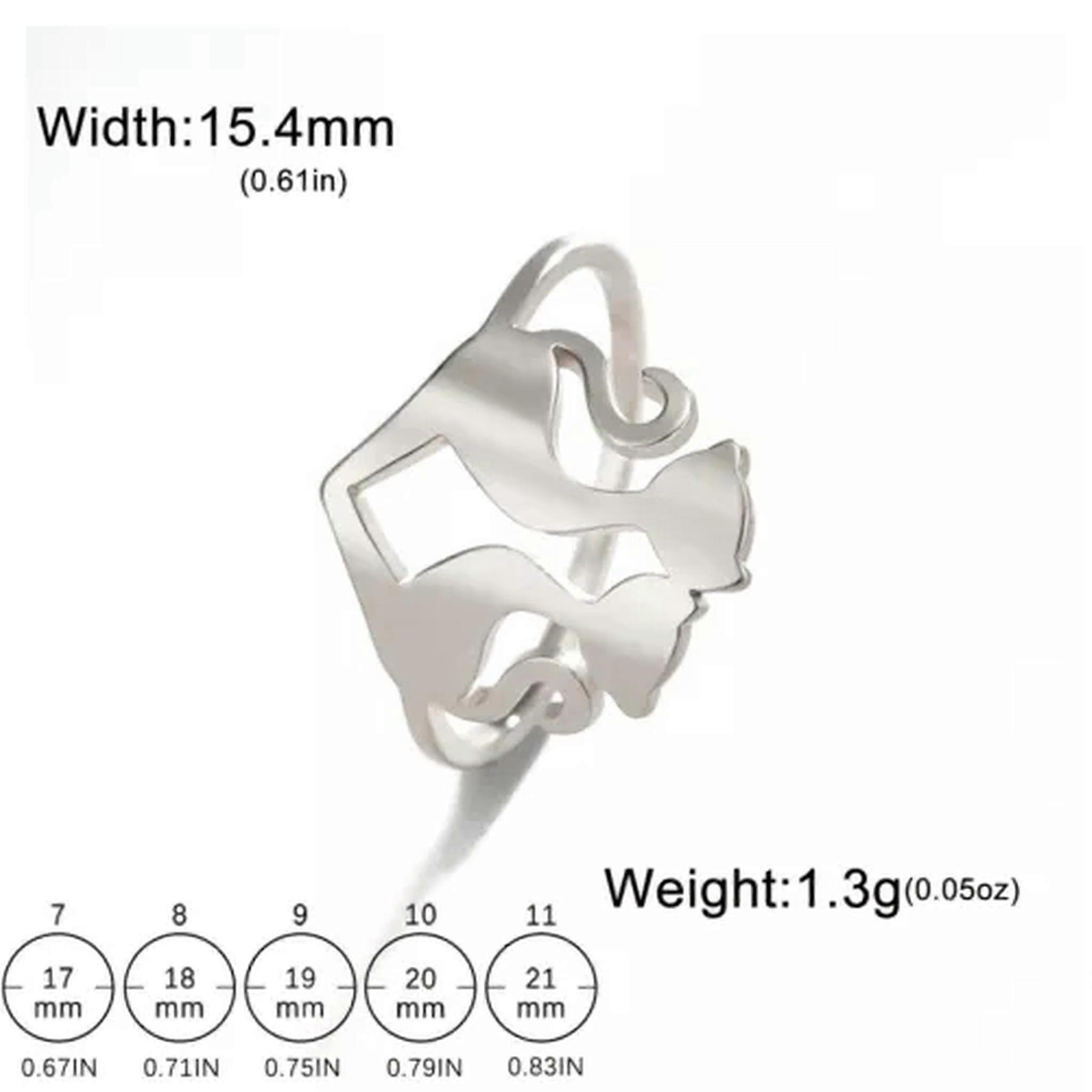 RSAMD Two Cats Rings for Women Stainless Steel Finger Ring Fashion Animal Jewelry-11-silver