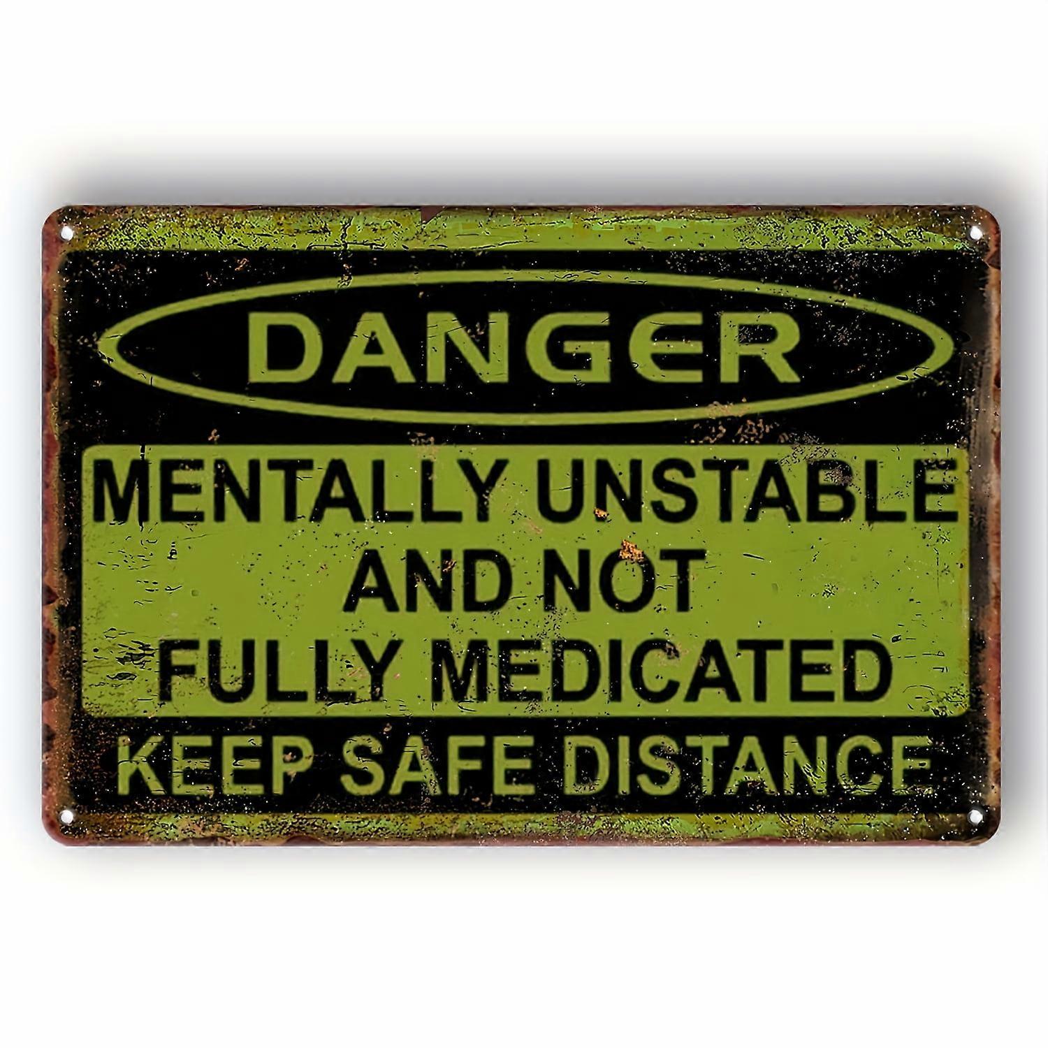 "1pc, Funny Vintage Metal Aluminum Sign Decor - Mentally Unstable & Not Medicated - 8""x12"" - Man Cave Yard Garden Wall Decor"