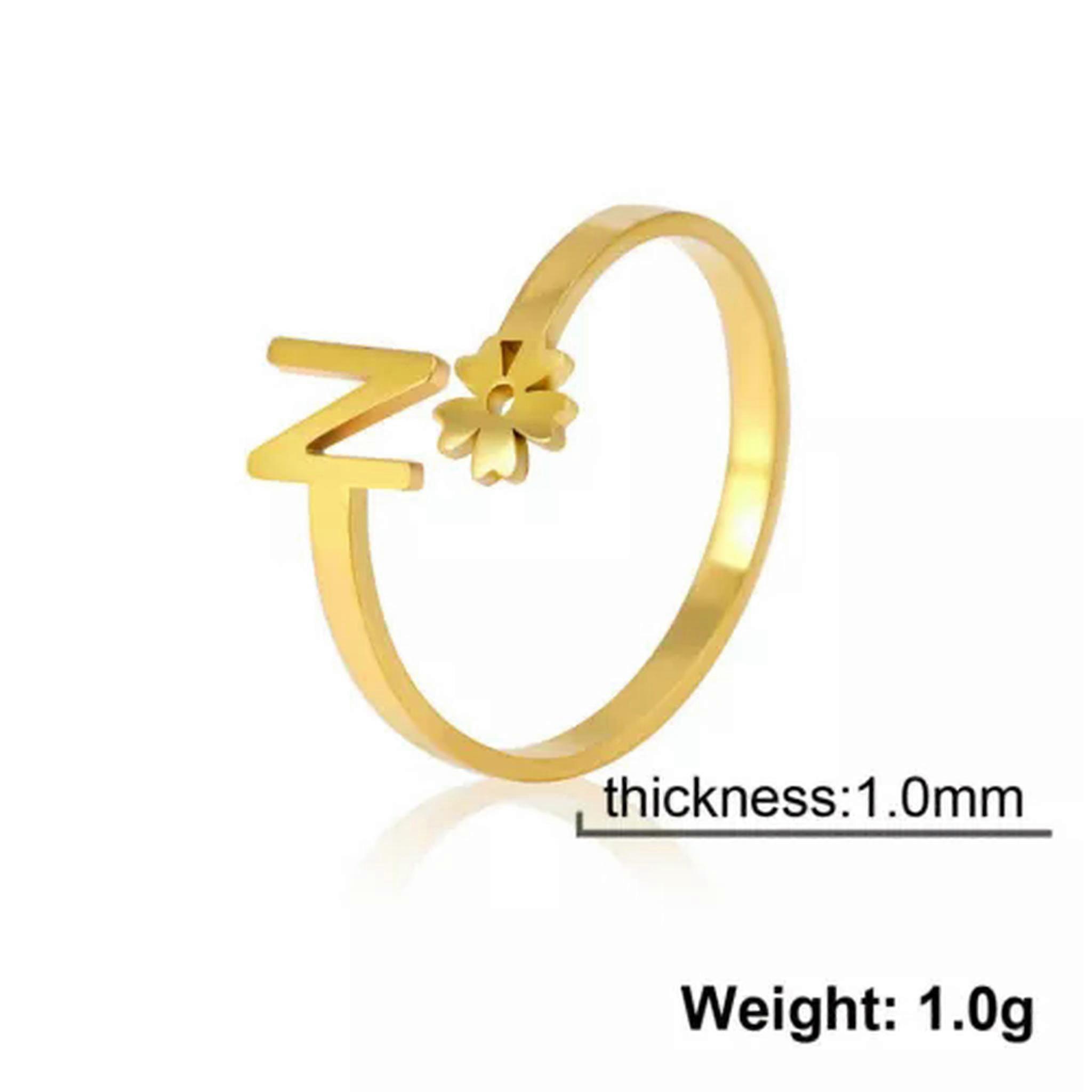 RSAMD Initial Letter Alphabet Women's Stainless Steel Rings Adjustable Daisy Jewelry-Adjustable-N Gold