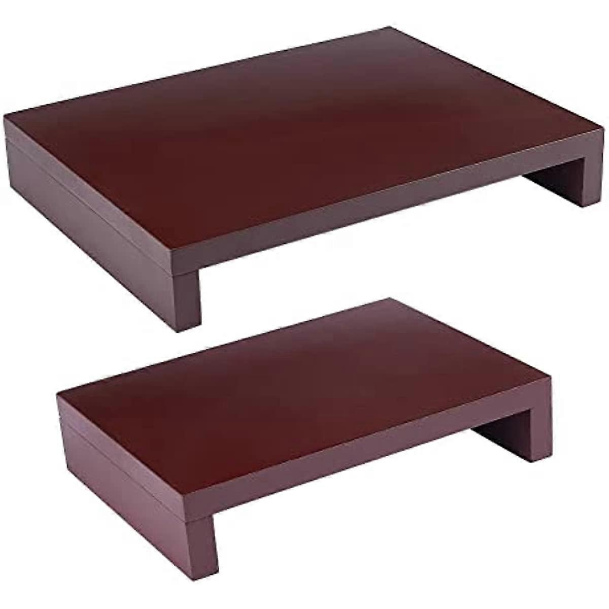2PCS Wood Display Stand (7x9 & 5x7 inch) Brown Riser for Gemstone, Vase, Perfume, Jewelry - Farmhouse Decor