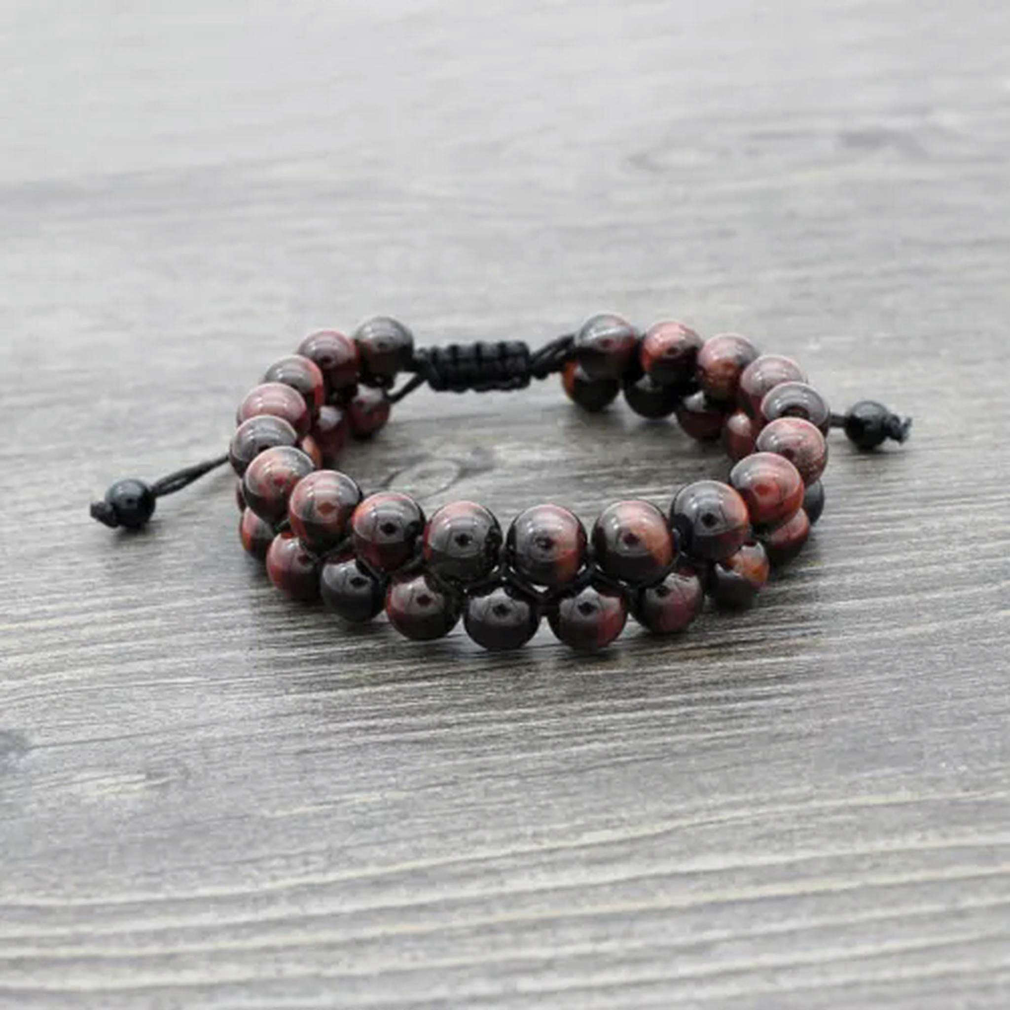 RSAMD Charm Natural Stone Tiger Eye Rock Lava Beaded Braided Rope Double Bracelets-Tiger eye
