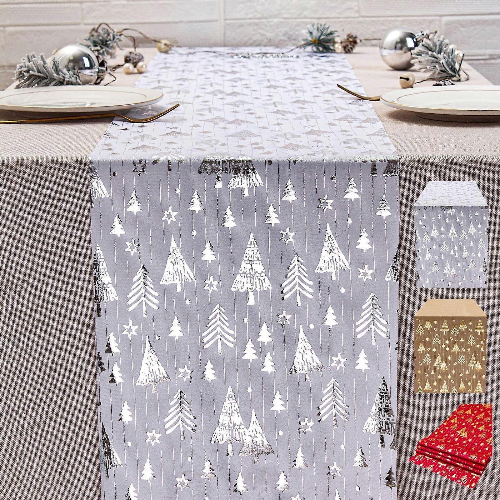 Up to 70% off Karymi Christmas tree table runner, hot gold velvet polyester cotton, printed holiday design, compatible with holiday gatherings.