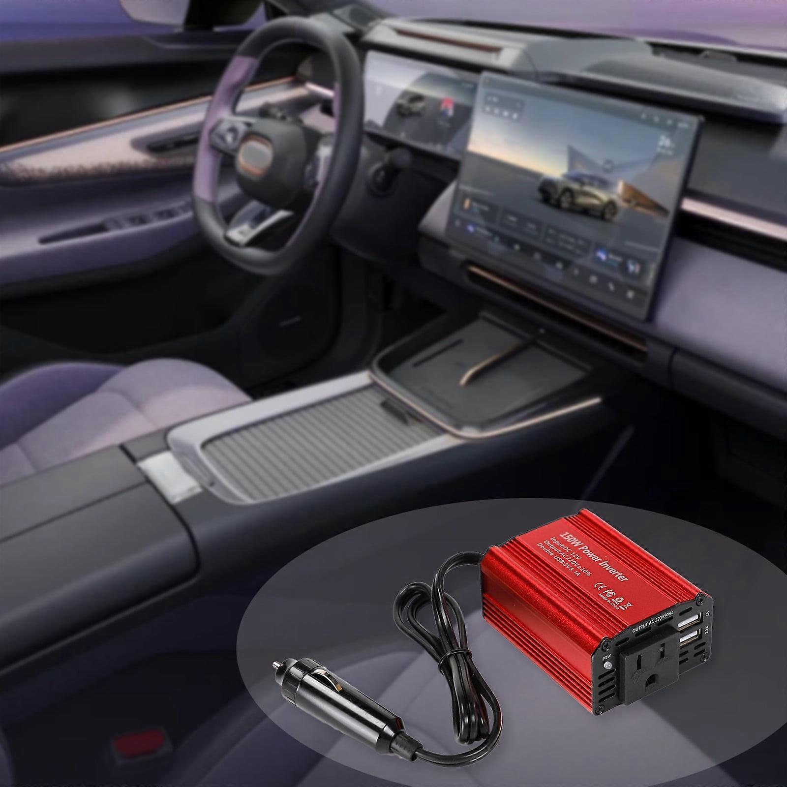 Car Charger Vehicle Inverter Output Power 150W In-car Connection Multi-interface USB 2.1 Built-in Intelligent Temperature Control Fan Suitable For Voltage 12V ✿Features: ✿Product Name: Vehicle inverter ✿Material: Alloy ✿Product color: Red ✿Packing size: 12*10.7*4.8cm/4.72*4.21*1.89in ✿Gross weight: 260g/0.573lbs ✿Output power: 150W ✿Maximum output power: 300W ✿Input voltage: 12V ✿Socket type: 110V ✿USB interface type: 1.0A, 2.1A ✿Product Description: ✿Multi-functional design. The in-car inverter has a built-in 110V socket, a 2.1A USB interface and a 1A USB interface to simultaneously charge your electronic devices such as mobile phones, tablets, laptops and more. ✿. The housing is made of aluminum alloy for excellent durability and insulation, effectively avoiding electrostatic problems and protecting your equipment. This vehicle inverter is suitable for use in cars with a battery voltage of 12V. ✿Smart silent fan. Built-in intelligent fan automatically adjusts the speed according to the load power, and runs with low noise. When the temperature reaches 45-50 ° C, the fan will start to ensure the long-term stable of the product. ✿Six types of security protection. To avoid threats to your device and your security, the inverter has six built-in security protection mechanisms, including overload protection, temperature protection, high voltage protection, low voltage protection, reverse wiring protection and short circuit protection to effectively avoid potential risks. ✿power cord. The power cord is made of rubber, which is very and can adapt to various harsh environments to ensure long-term stable power supply. This vehicle inverter is powerful and suitable for a wide range of applications. You can use it in car, truck, camping, travel and other scenarios to power your electronic devices anytime, anywhere. Whether you are traveling or commuting daily, it can meet your multiple needs. ✿Package Included: ✿1*Vehicle inverter ✿1*Specification ✿ ✿ Product Name: Vehicle inverter ✿ Material: Alloy ✿ Product color: Red ✿ Packing size: 12*10.7*4.8cm/4.72*4.21*1.89in ✿ Gross weight: 260g/0.573lbs