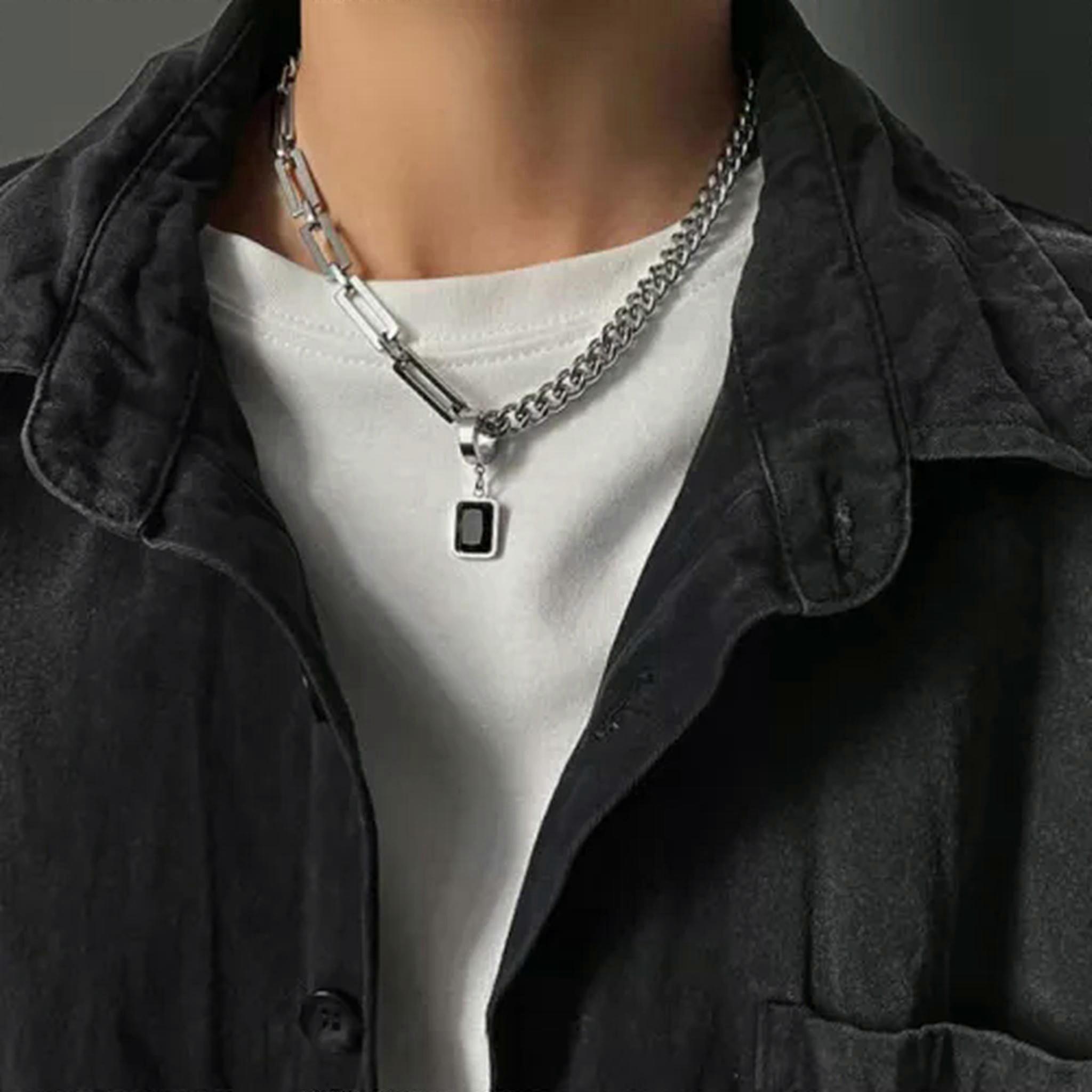 RSAMD Creative Hip-hop Tide Brand Simple Black Square Earrings Pendant Necklace Menjo-A2