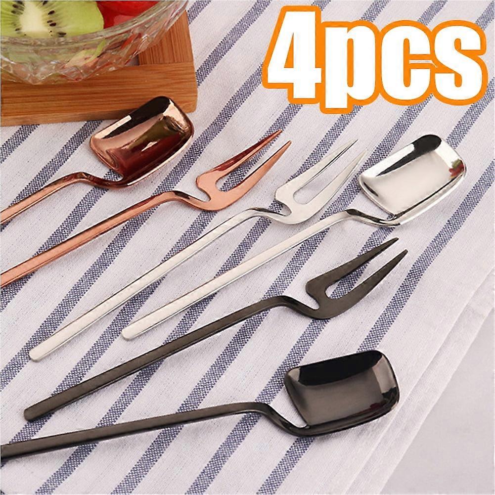 Vnanda 4Packs Small Forks & Demitasse Spoons, Stainless Steel Dessert Forks, 2-Tine Cocktail Salad Fruit Forks for Party Travel, Compatible with