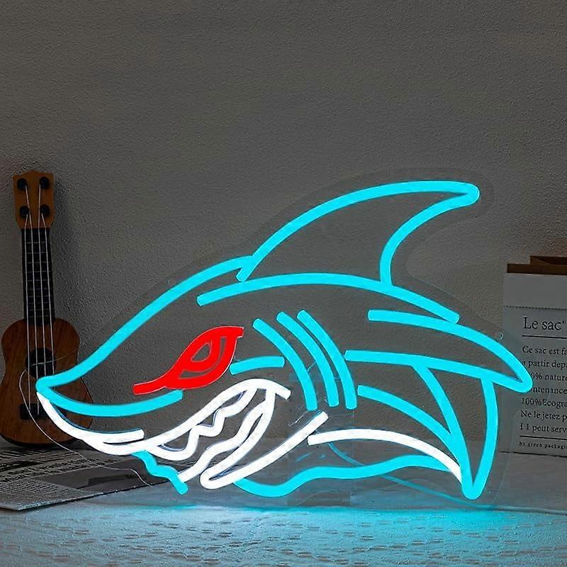 Shark Neon Sign, Blue Animal Neon Light for Wall Decor, USB Powered Dimmable LED, 16.53x11.81 in, Bedroom Boys Room Game Room Bar Club Decor