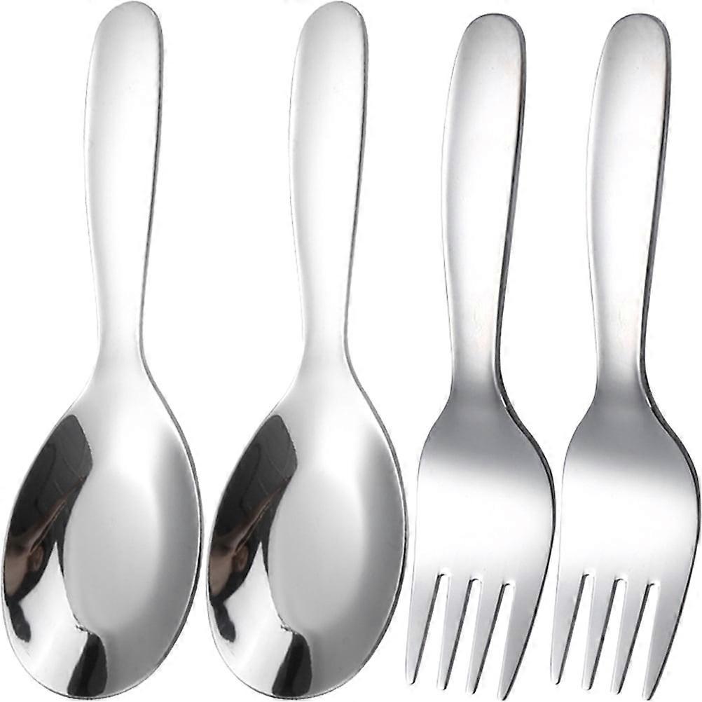 Fork and Spoon Set Kids Silverware Metal Forks Toddler Stainless Steel Teaspoon 4 Pcs