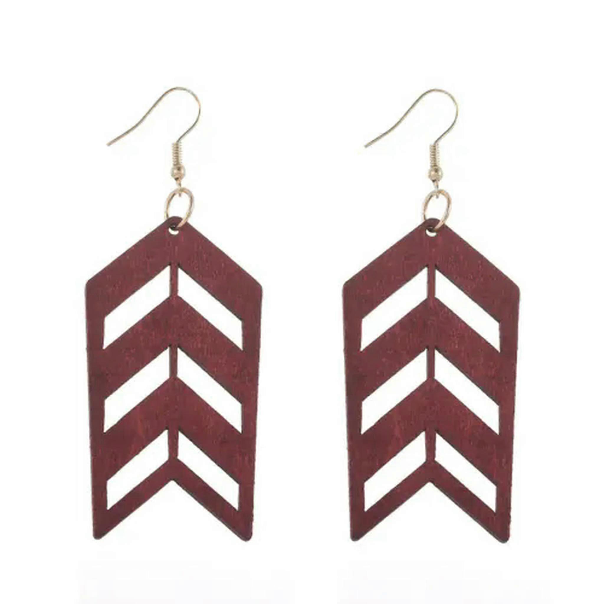 RSAMD Hollow Chevron Arrow Leaf Geometric Wood Statement Earrings Women Jewelry Gifts-Burgundy