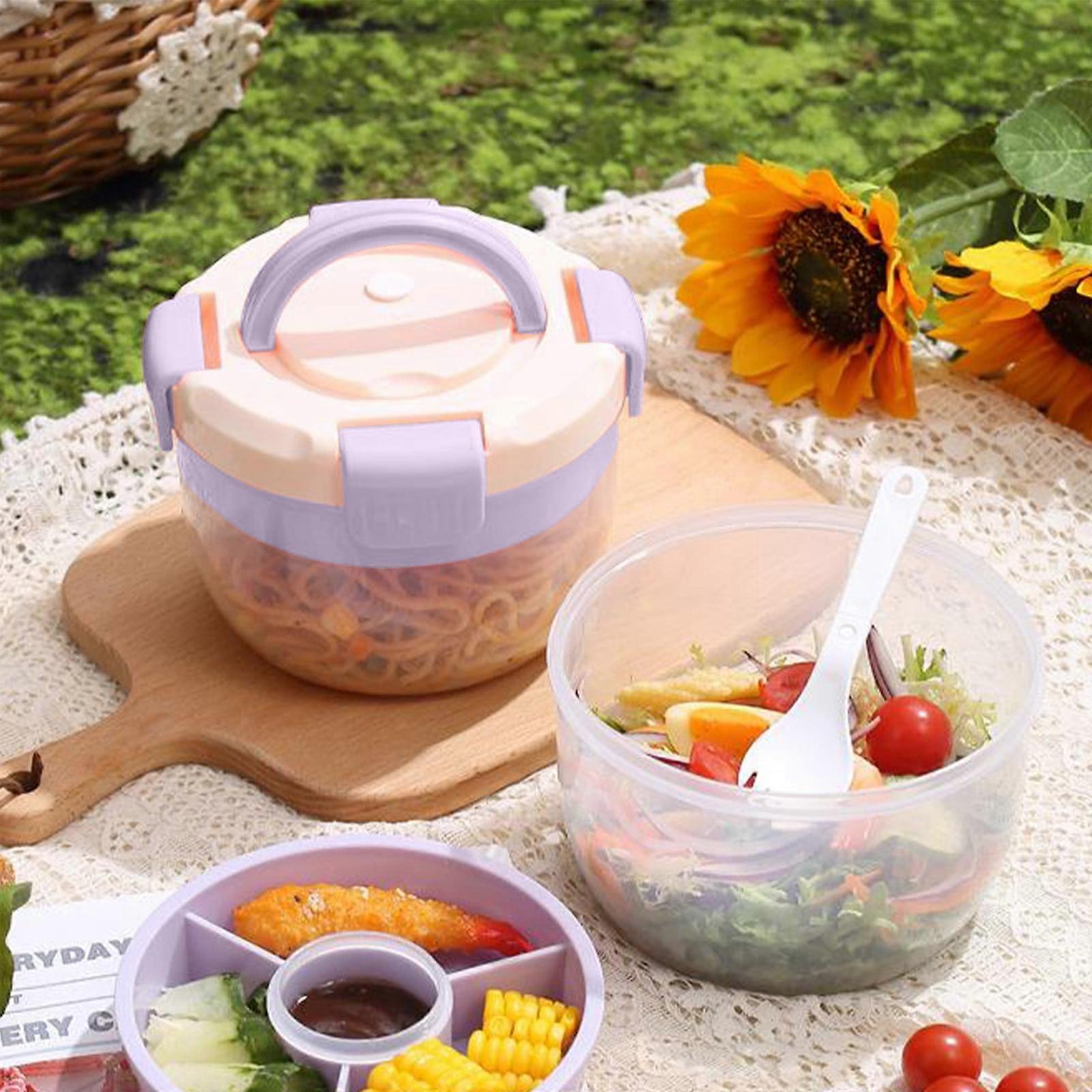 Txmfgh Salad Lunch Box, Microwaveable Double Layer Round Container, Compatible with Fruit & Meals, Stylish Lunch Bowl for Home or School
