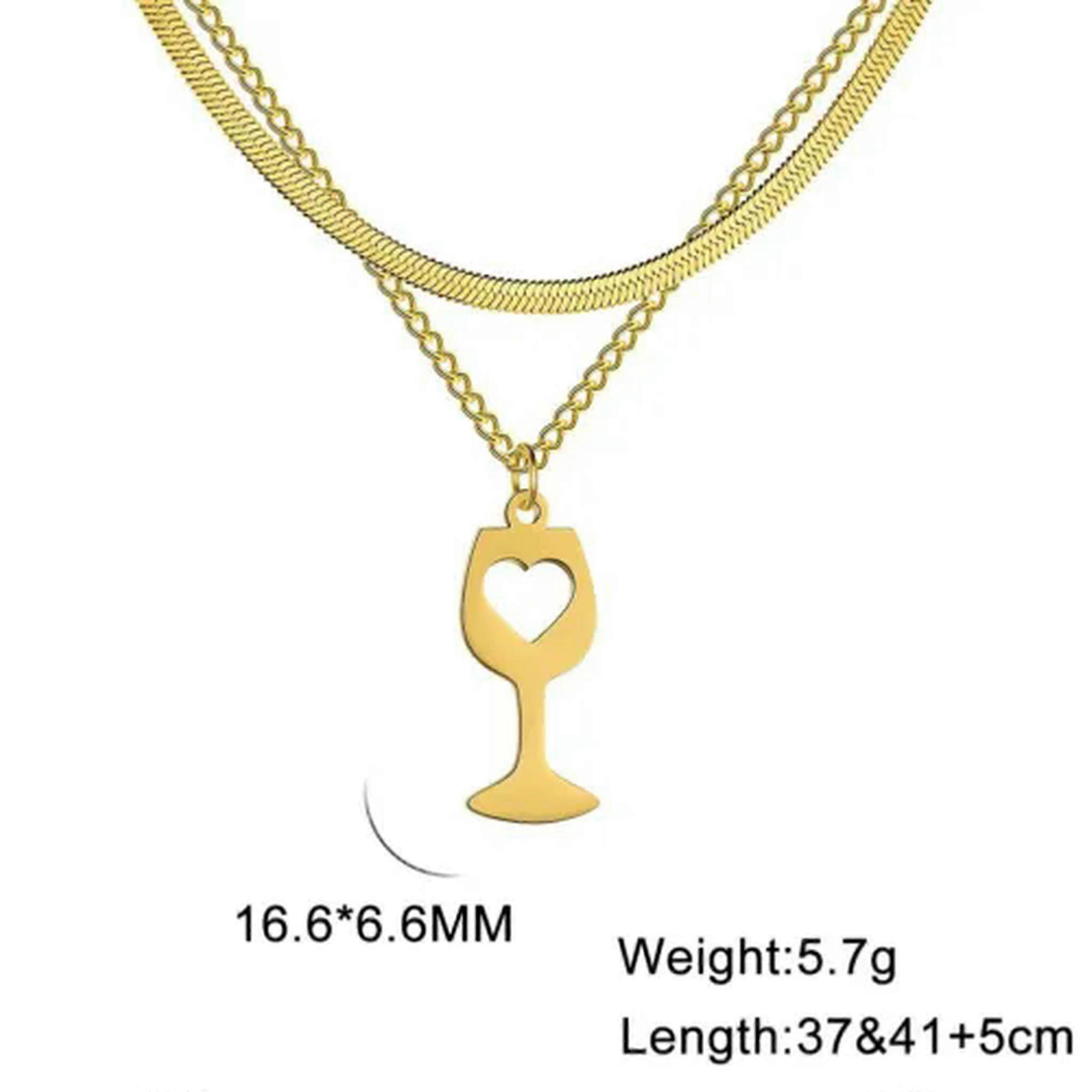 RSAMD Wine Glasses Pendant Necklaces for Women Stainless Steel Choker Necklace Jewelry-Double Chain