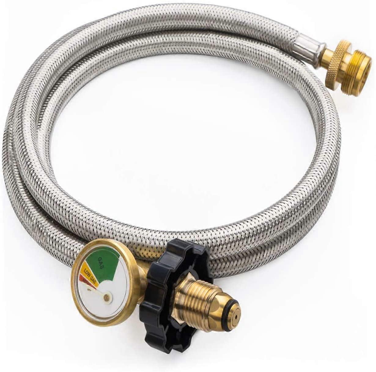 5ft Propane Adapter Hose with Gauge, Converts 1lb to 20lb Tanks with POL, compatible with Coleman Stove, Torch, Grill, Camping Stove