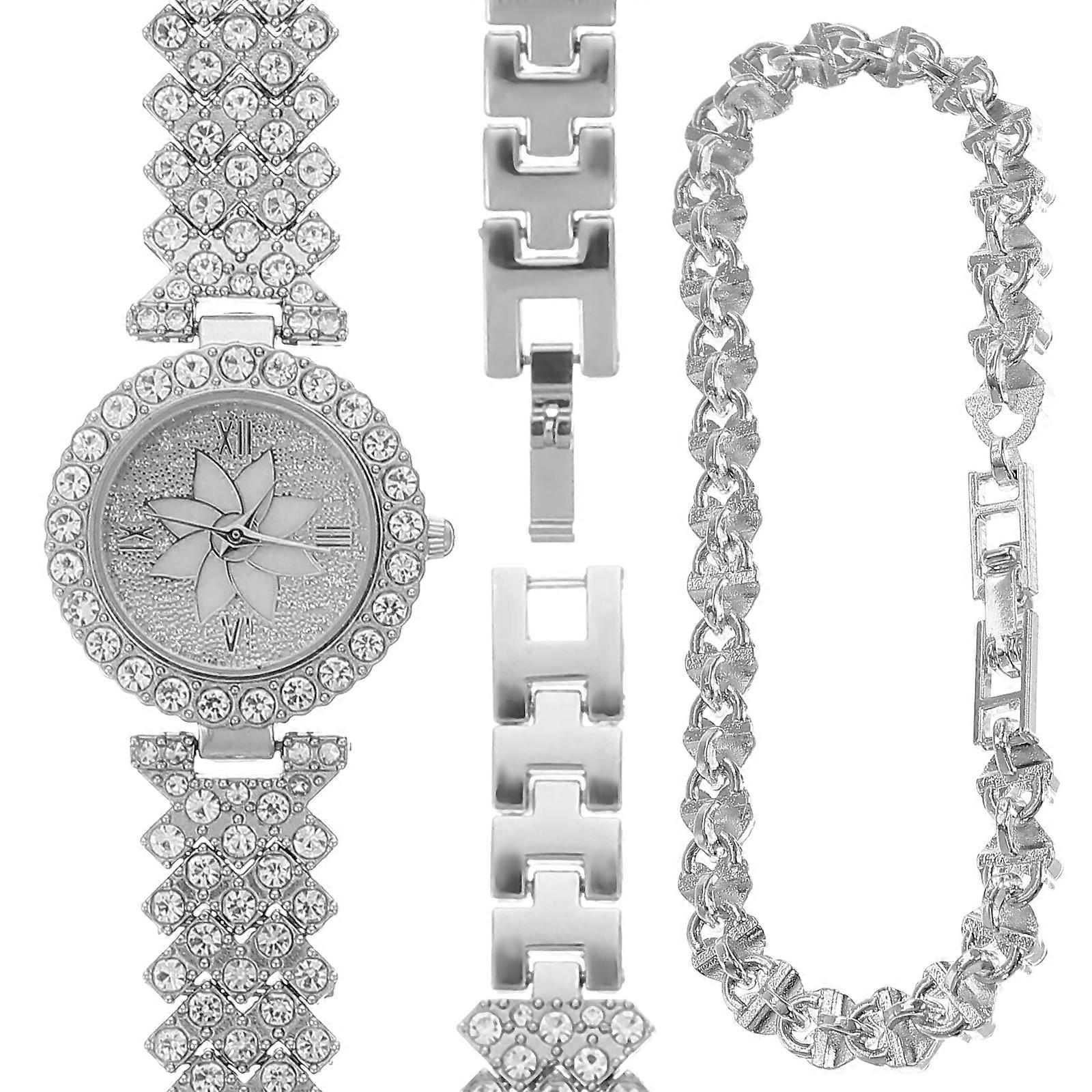 Women Quartz Watch Bling Rhinestone Inlay Ladies Fashion Wrist Watch and Bracelet Set