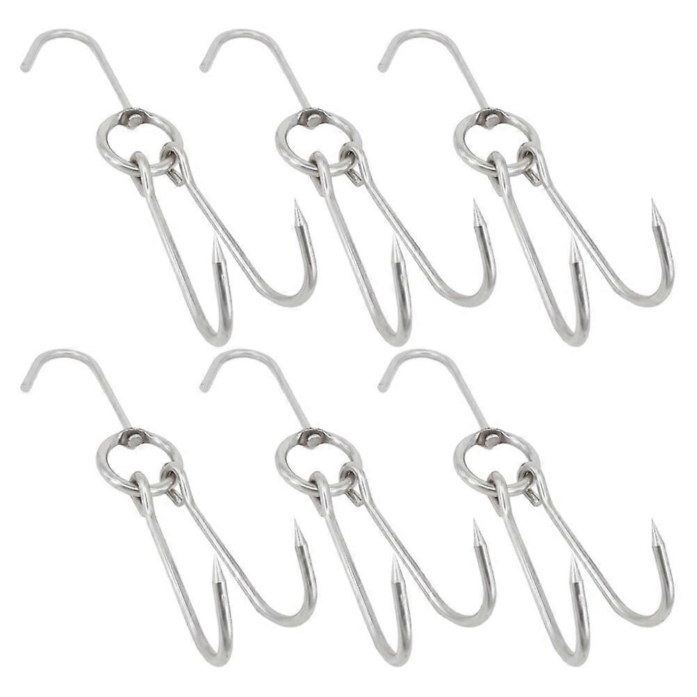 Grill Hooks Stainless Steel Meat Metal Clothes Rack Secure Safety Pork Roast Chicken 6 Pcs