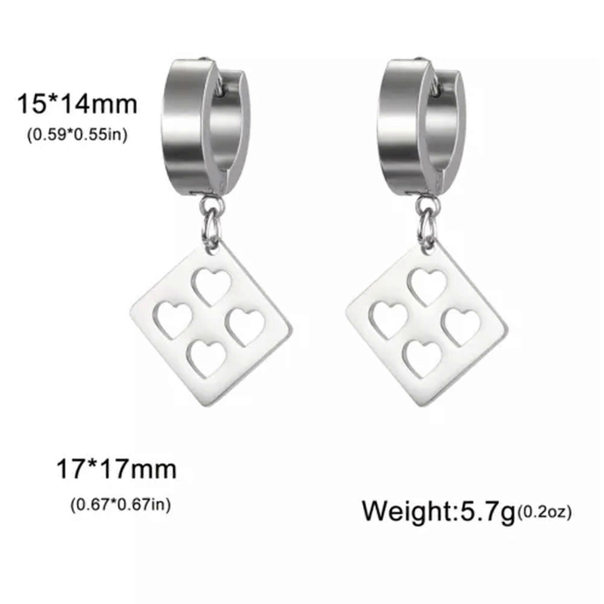 RSAMD Hollow Hearts Square Pendant Drop Earrings for Women Stainless Steel Jewelry-B Steel
