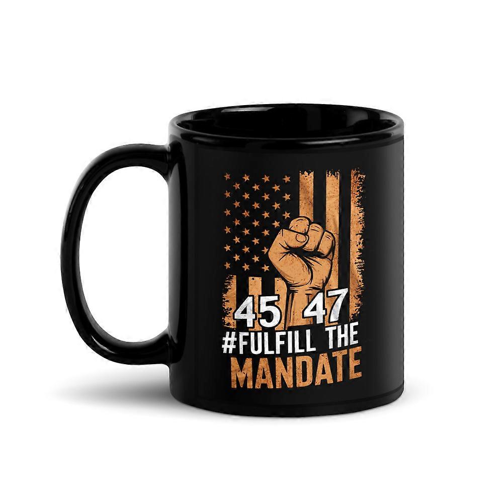 US Flag Vintage Design Black Glossy Mug, Fulfill The Mandate 45 47 (11 oz)