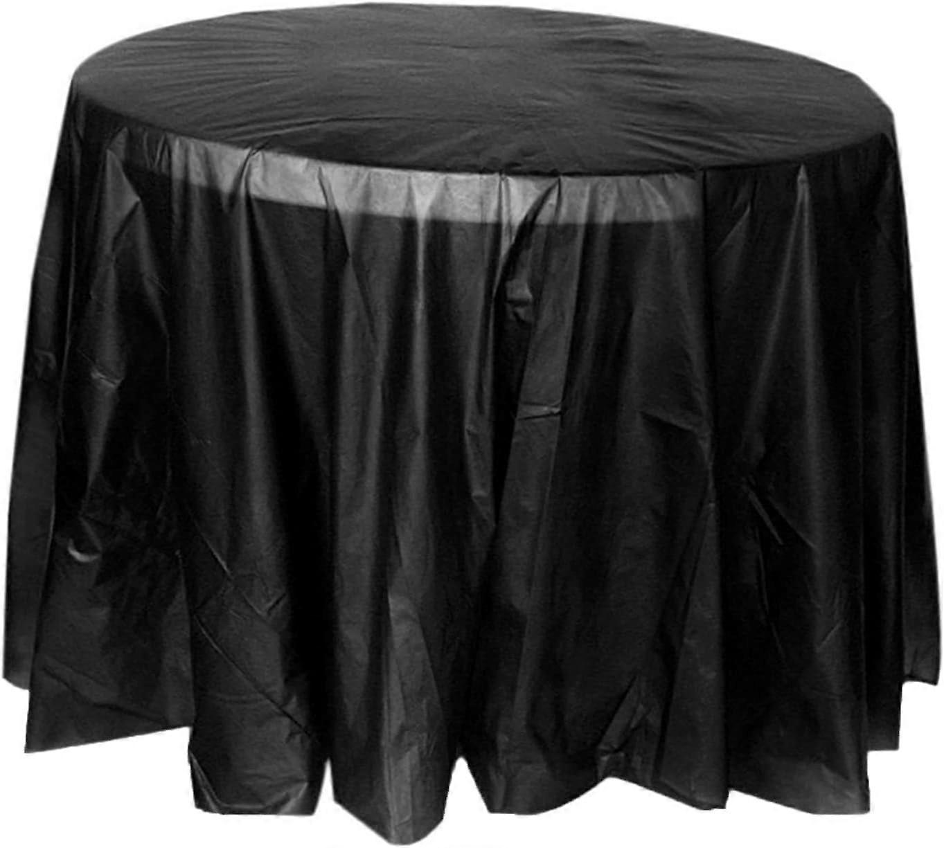 6 Pack Premium 84 Inch Disposable Round Plastic Tablecloths Picnic/Camping/Party/Banquet Table Cover. Table Cloth for Round 84" Tables (Black)