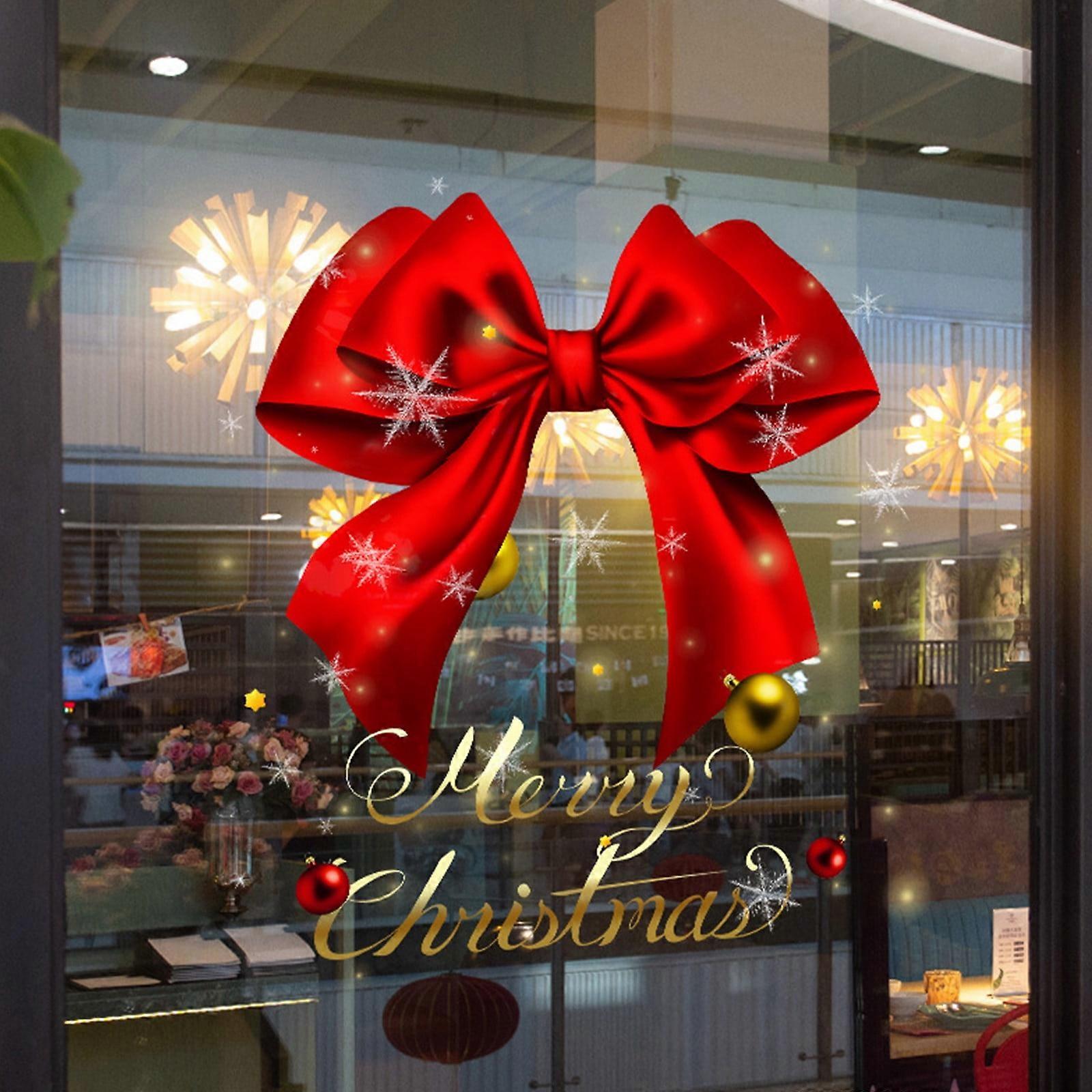 YANHAIGONG Christmas Window Clings Stickers,Xmas Bow Cling Double Side Window Decals Sticker DIY Christmas Decor for Glass Wall Window Door,Christmas Bow Knot Bell Garland Stickers for Windows Doors