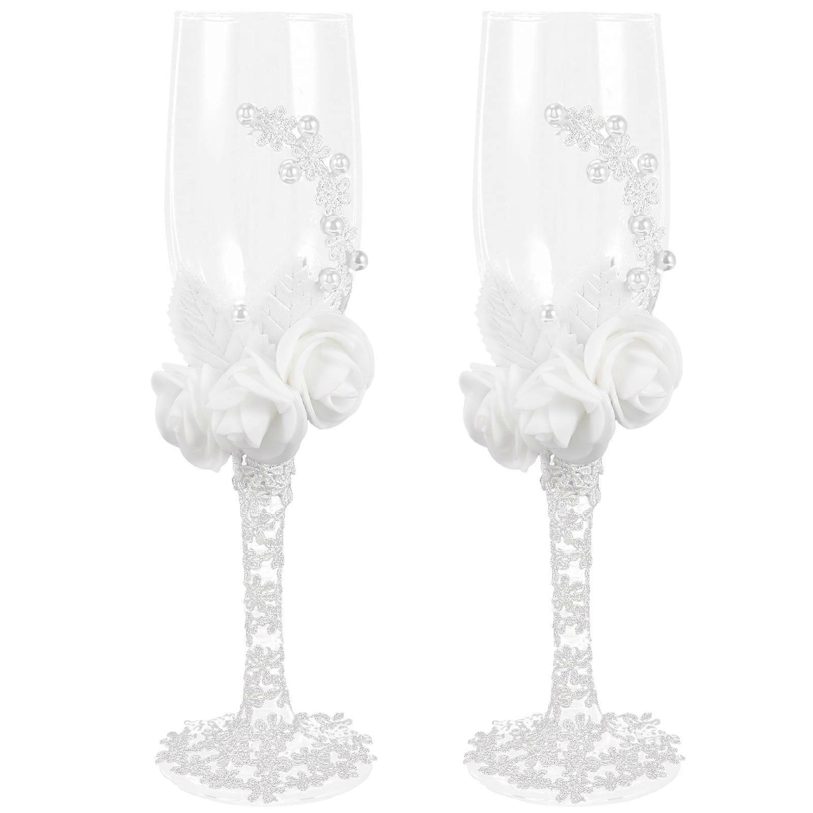 Champagne Glasses Wedding Toast Bride and Groom Flutes Drinkware Sets