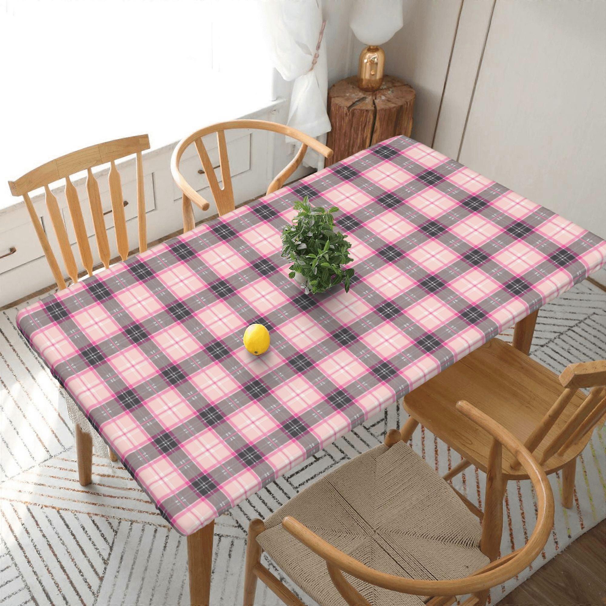 Pink Tartan Plaid Design Tablecloths Polyester Table Cloth For Kitchen Dinning Table Washable Table Cover For Parties Wedding Picnic