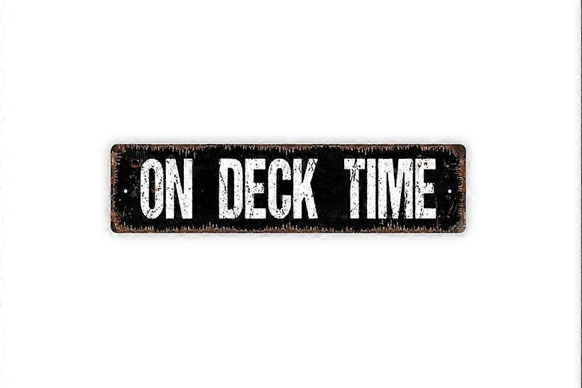 Funny Aluminum Metal Sign - On Deck Time, Backyard Paradise, for Patio, Lanai, Fire Pit, 4x16 Inch Rustic Street Plaque (Compatible with outdoor