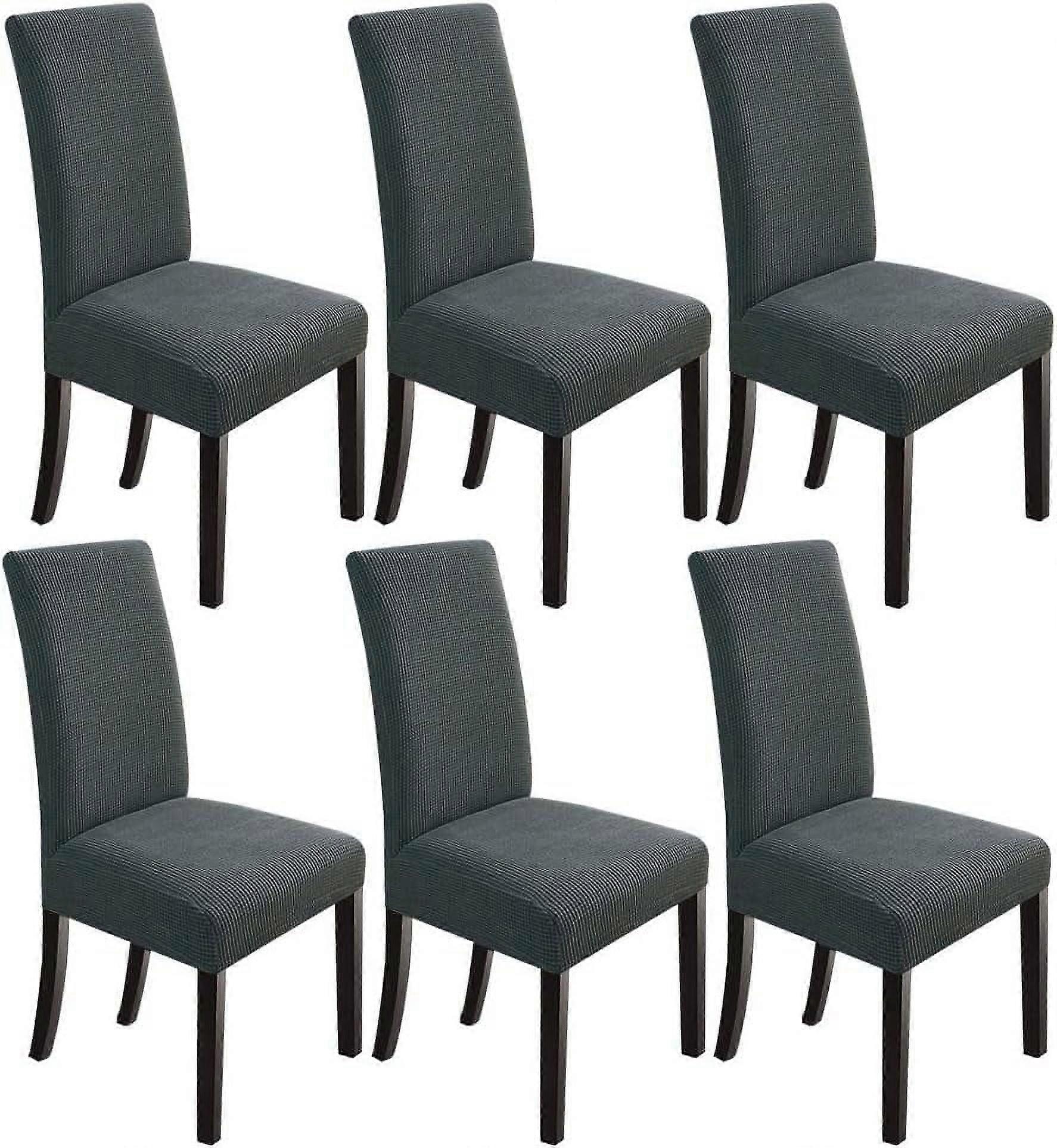 POWKOL Chair Covers for Dining Room 6 Pack, Soft Removable Dining Chair Slipcovers, Stretch Chair Covers, for Kitchen, Hotel, Restaurant, Dark Grey