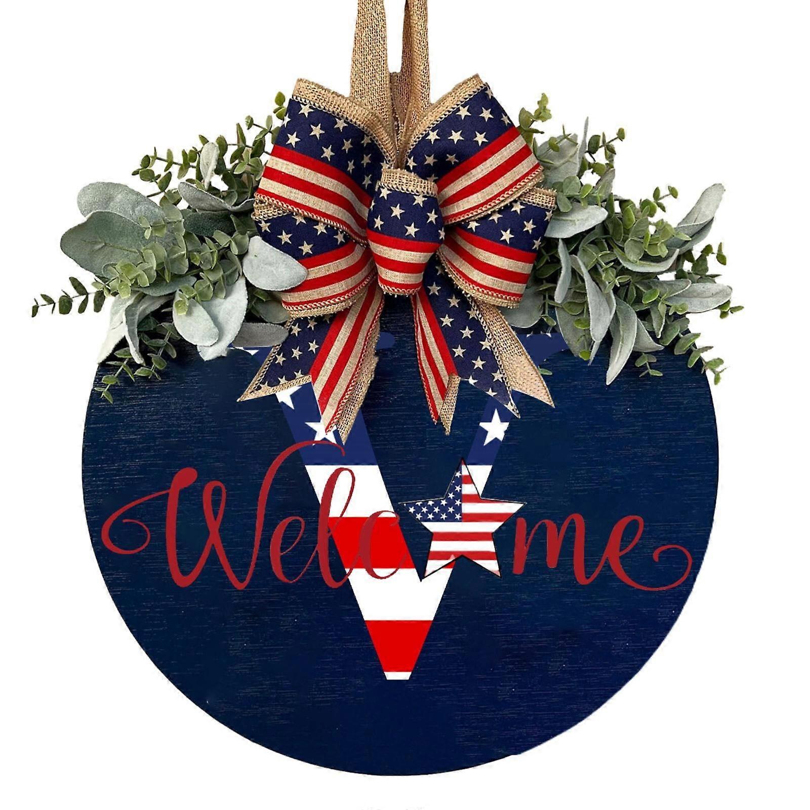 Hanging Ornaments 2024 A-Z New Surnames Independence Day Front Door Garland, 26 Letters Farmhouse Welcome Sign with Garland Bow, Yard Door Gift