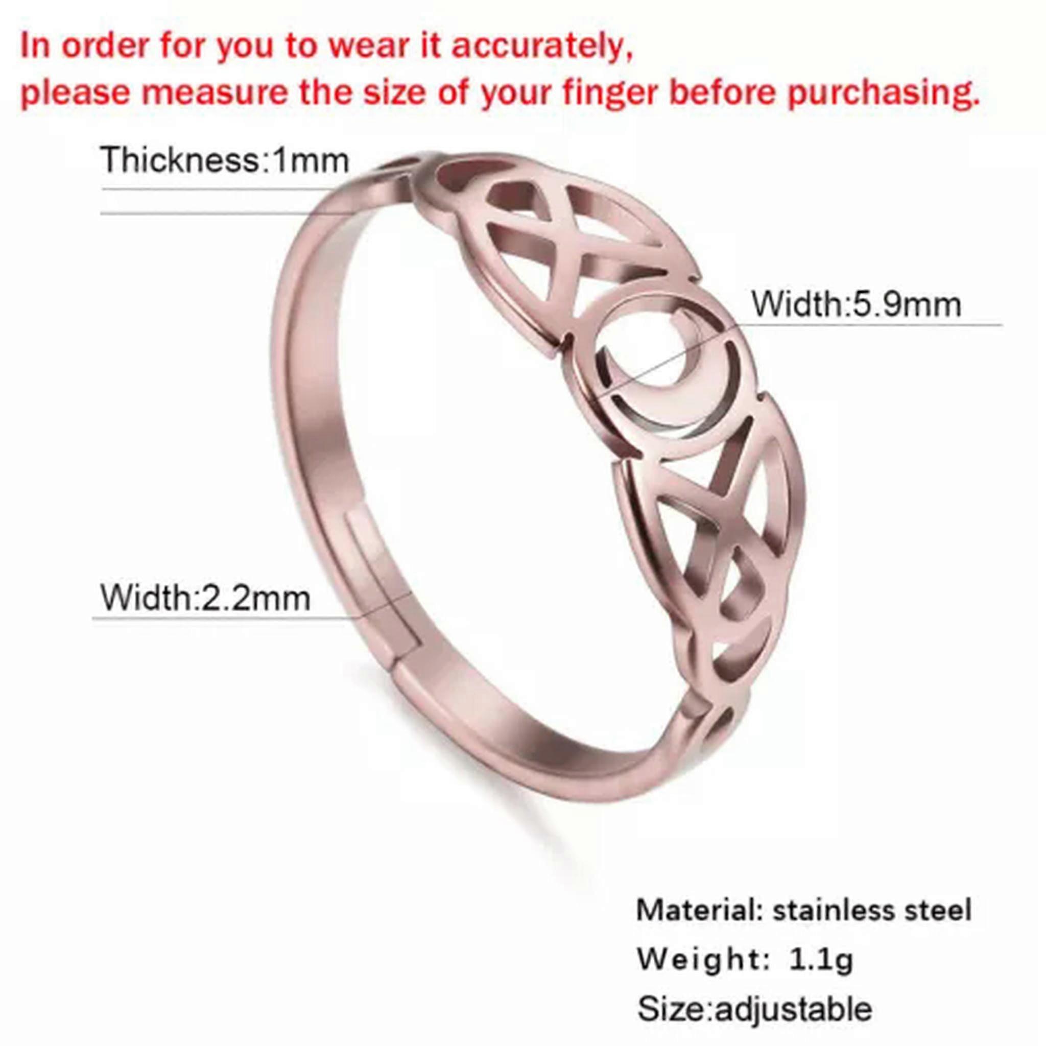 RSAMD Vintage Moon Irish Knot Ring Stainless Steel Resizable Ring Women Wedding Gift-Adjustable-Rose Gold