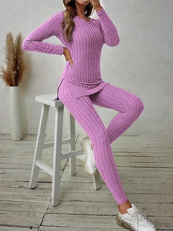 Women's Solid Long Sleeve V Neck Top & Skinny Pants Pajama Set, Casual Comfy Loungewear Set for Daily Wear, Ladies Sleepwear for All Seasons