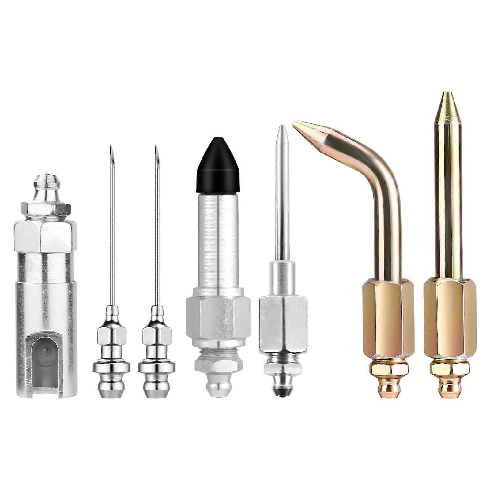 Industrial 7pc Lubrication Attachments Set With High Pressure Nozzles And Rubber Joint Seal Components For Narrow Space Applications Multicolor