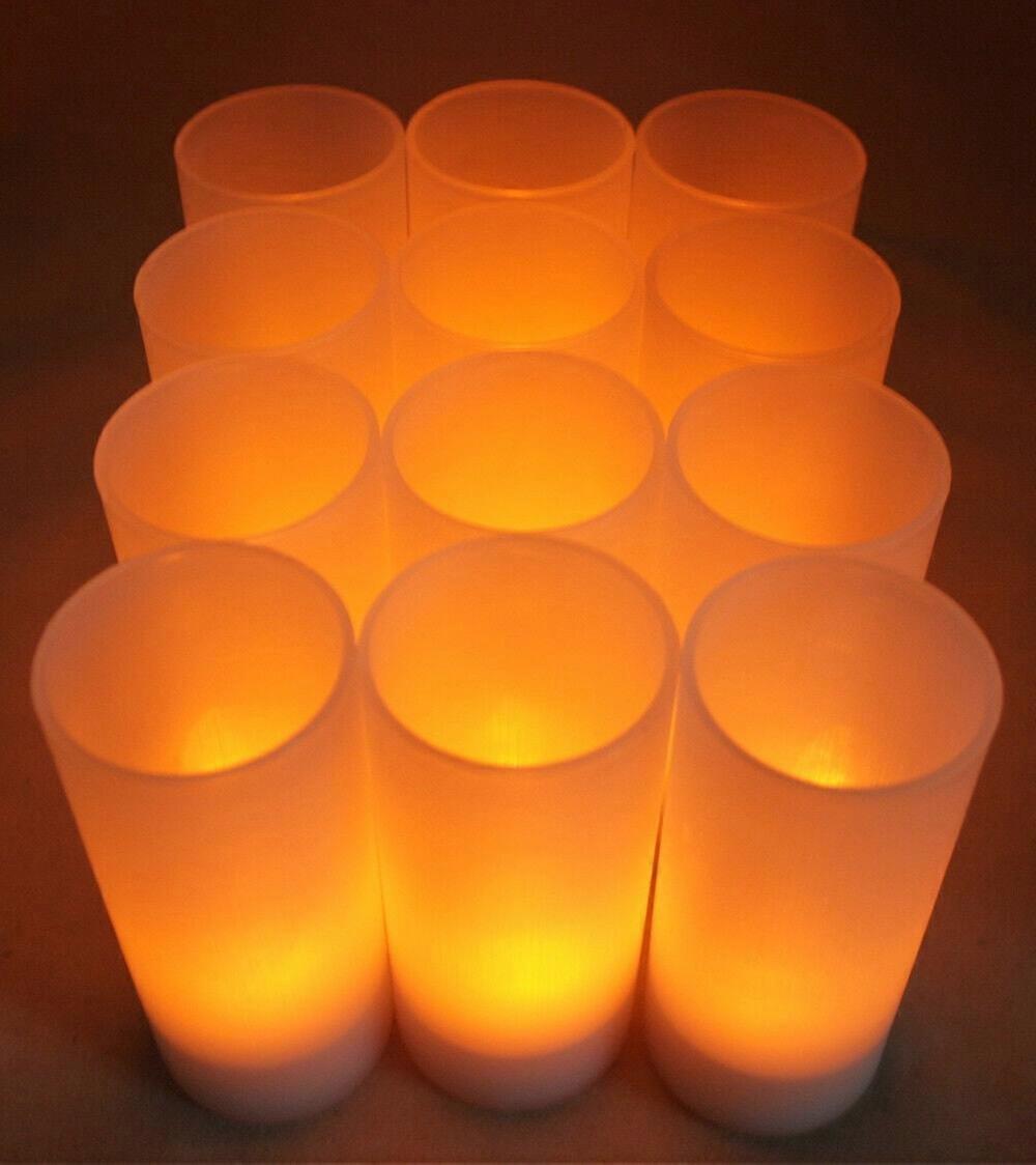 12 LED Rechargeable Amber Flameless Tea Light Candle Romantic Wedding Event