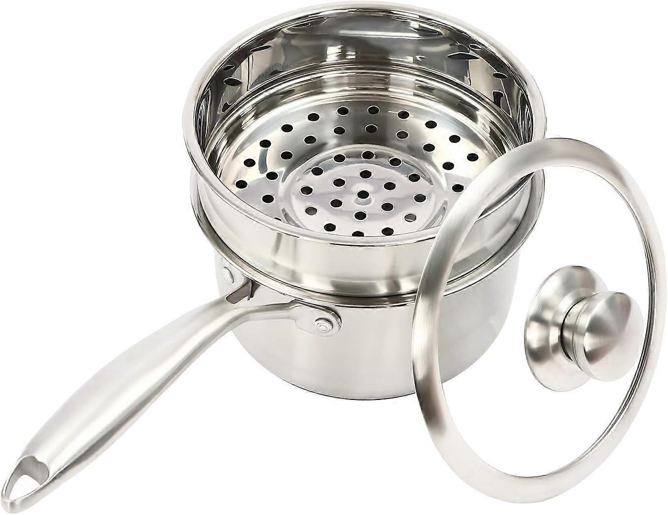 Stainless Steel Steamer Basket 2 Quart Multipurpose Sauce Pot Boiling Gravies - High-quality 304 SS - Convenient Two-Size Drainage Holes Lid