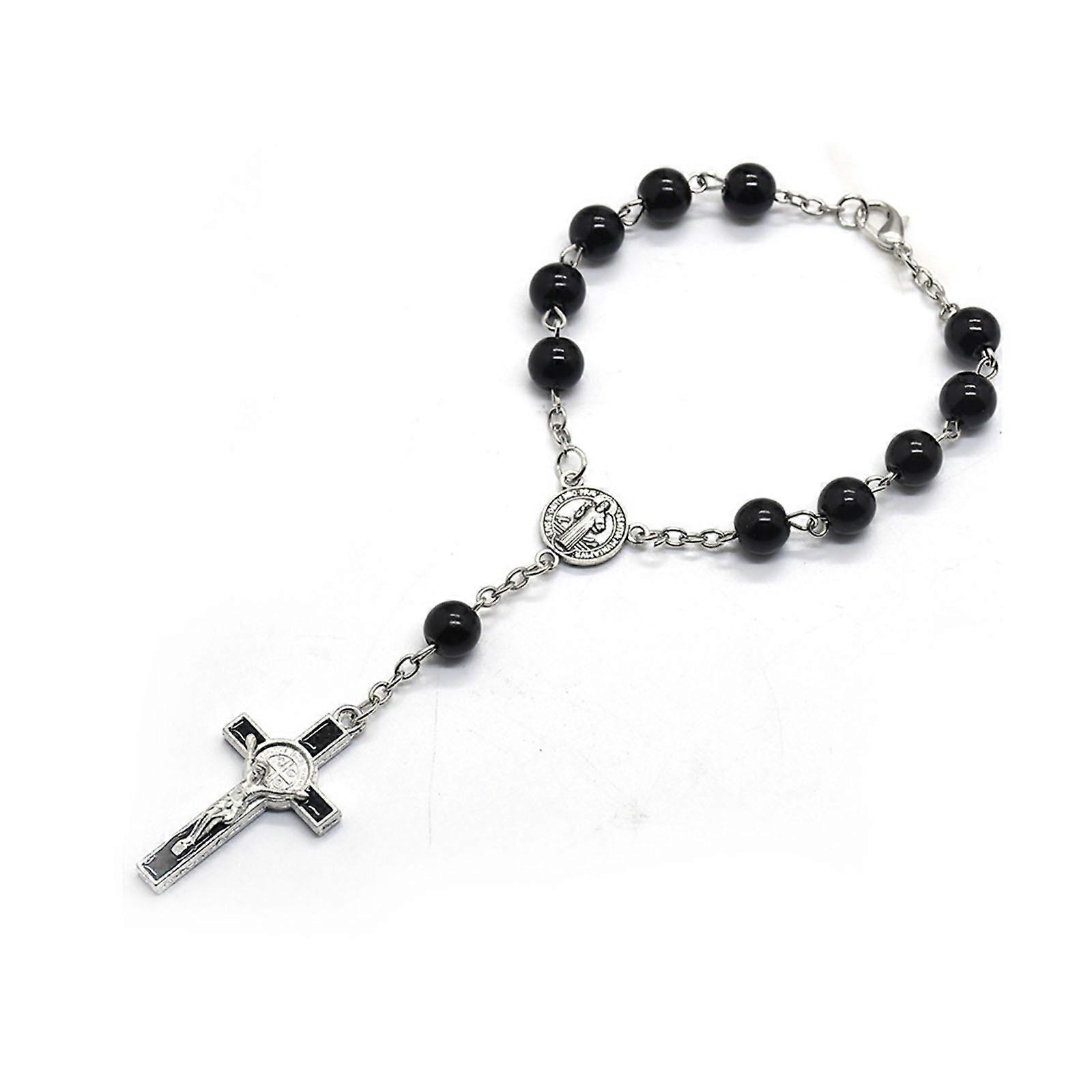 Rosary Bracelet Bracelet Black Glass Beads for Cross Rosary Bracelet Catholicism Prayer Religious Jewelry for Friends Multicolor
