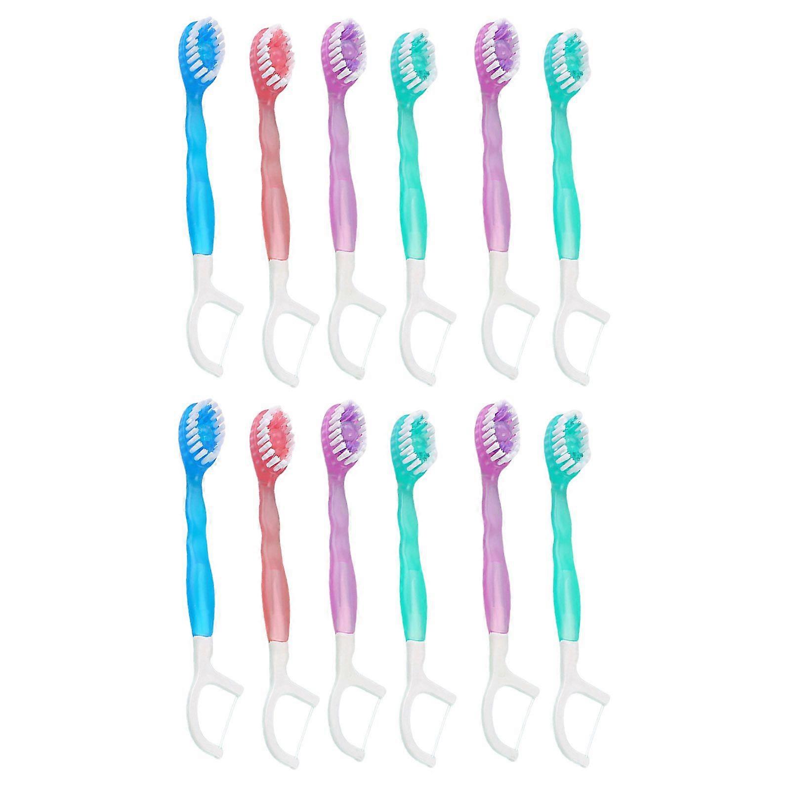 12Pcs Disposable Toothbrush Kit 5-in-1 Toothbrush Dental Floss Tongue Cleaner for Camping Office Various Flavors Date Night Dental Wire Kit