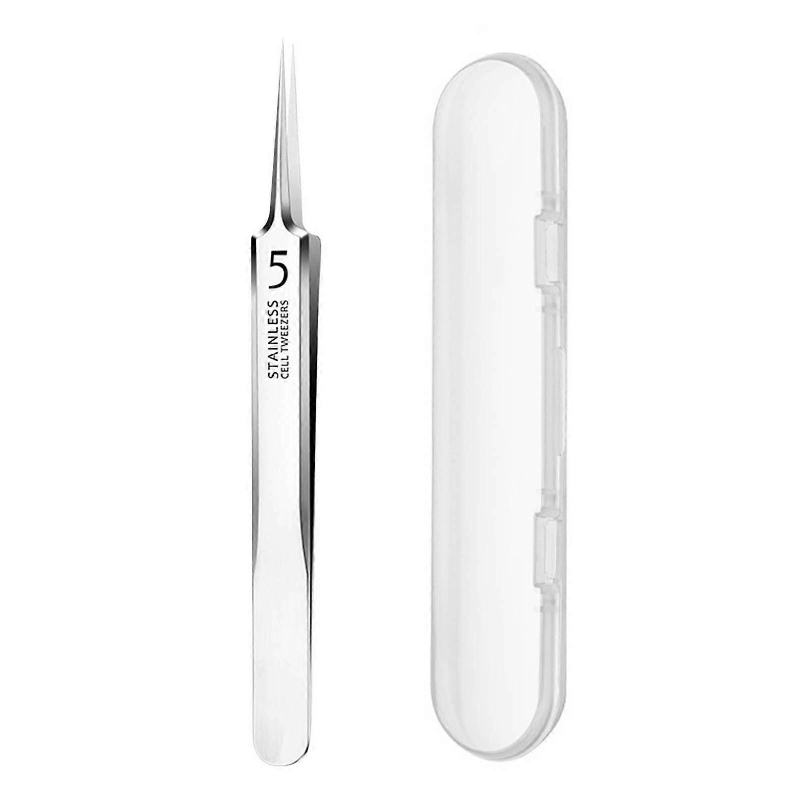 Extra Fine No. 5 Stainless Steel Acne Blackhead Tweezers for Skin Care Blackhead Extractor with 10x Magnifying Glass Gentle Acne Removal Tool