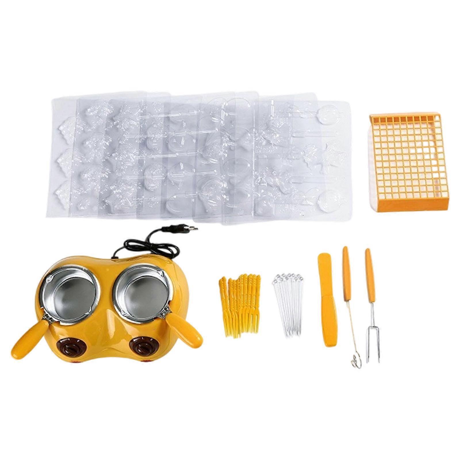 Features: Effortlessly melt two types of chocolate simultaneously with this double pots chocolate melting machine, featuring ±1°C precisions temperature control and 50% faster workflows efficiency for professional results. Builting with aluminum pots, ABS insulated housing, this countertop appliance ensures safe, stable melting without scorching or cleanups. Perfect for home baking people crafting custom treats, parents hosting candy making, or hobbyists seeking restaurant quality chocolate tempering for home. Streamlines dessert preps during holiday gatherings, birthday parties, or weekends family activities while keep kids engaged in creative kitchen projects. The detachable double chamber design simplifies post use maintenance, allowing quick 30 second rinsing so you can focusing on perfecting recipes rather than scrubbing tool. Specifications: Component: Aluminum Color: Yellow/Pink Plug Type: US Voltage: 110V Power: 25W Frequency: 50Hz Size: As Picture Shows Package Includes: 1x Instruction Manual 1x Host 2x Inner Container 2x Mixing Fork 10x Fruit Fork 8x Plastic Molds 1x Spatula 1x Filter note: Please allow 1-2cm errors due to manual measurement. Due to the differences between different monitors, the picture may not reflect the actual color from the item.