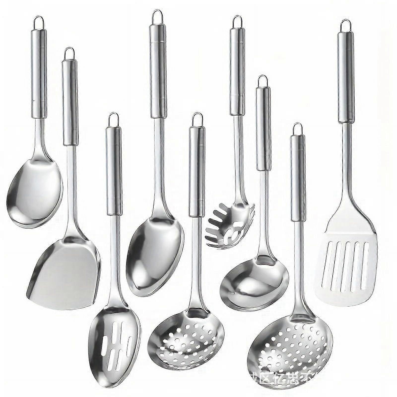 9-piece premium non-stick stainless steel cooking utensil set for home chefs-easy storage, washable, ideal for culinary enthusiasts
