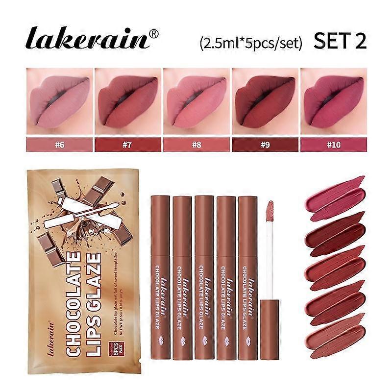 5 Counts Chocolate Lip Stain Set, Matte Finish Lip Gloss with High Pigmentation, Long-Lasting & Waterproof Lip Tint, Cute Tinted Lip Gloss w