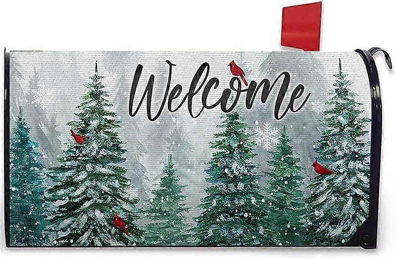 Merry Christmas Fabric Welcome Mailbox Cover, Magnetic 21"x18", Green Xmas Winter Yard Garden Decor, Compatible with Standard Post Boxes