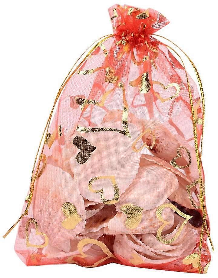 100pcs Heart Printed Organza Bags Red Jewelry Pouch Bags Mesh Sheer Drawstring Bags Wedding Favors Bag Gift Bags