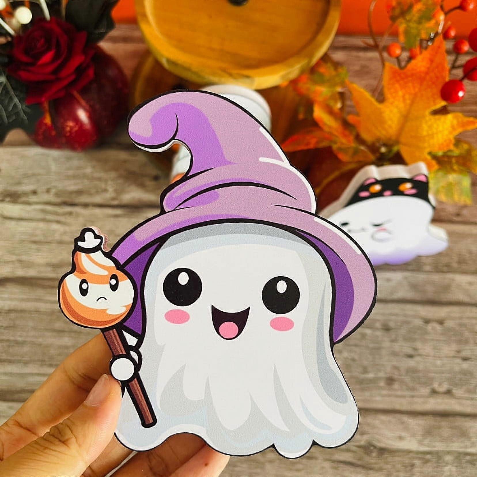 2024 Halloween Decorations, Ghost Halloween Decor Indoor Tiered Tray Spooky Ghosts Crafts Witch Broom Tabletop Block Sign, compatible with fall party