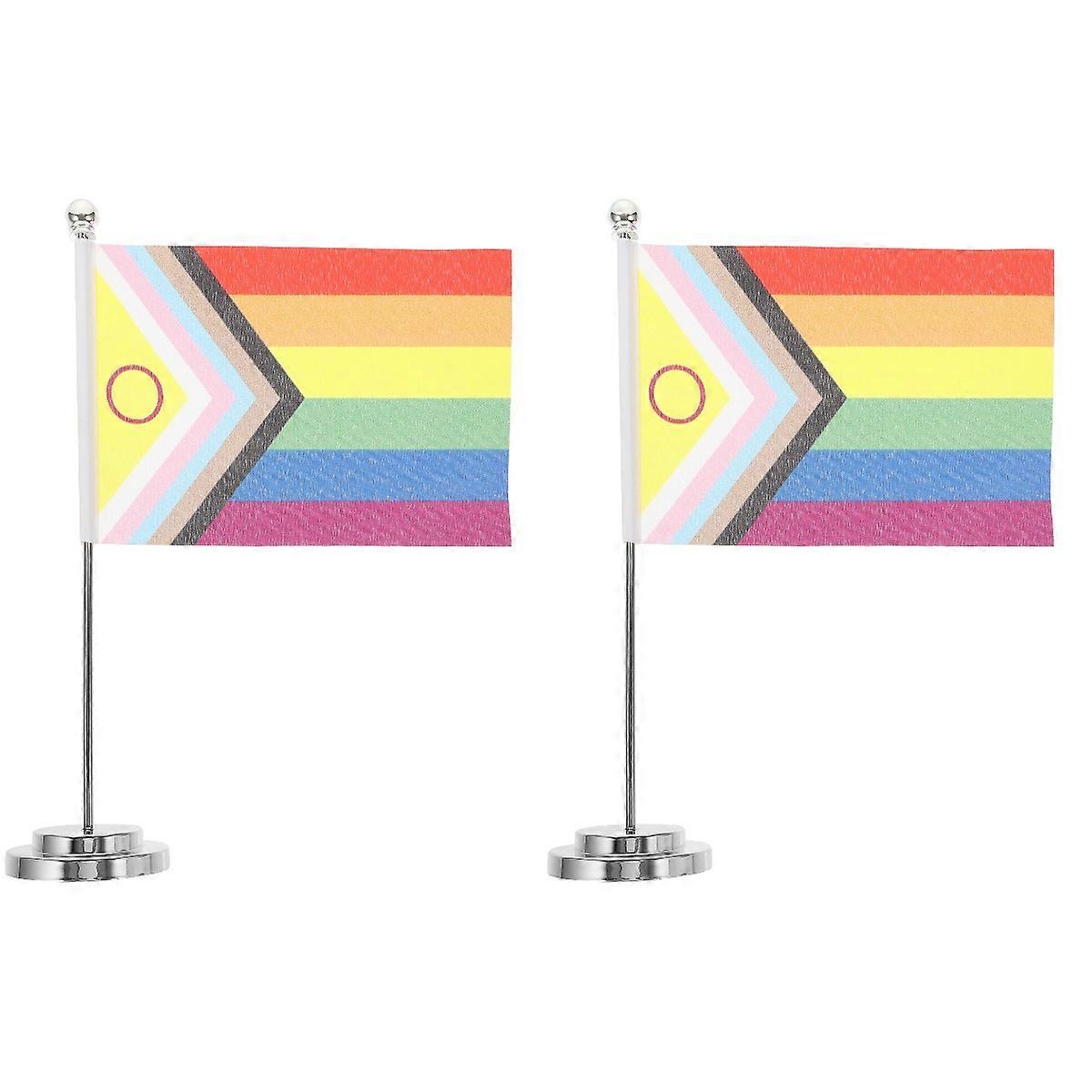 2 Sets Rainbow Single Pole Table Runner Mini Decor Color Flags Pride Nicaragua for Lgbt