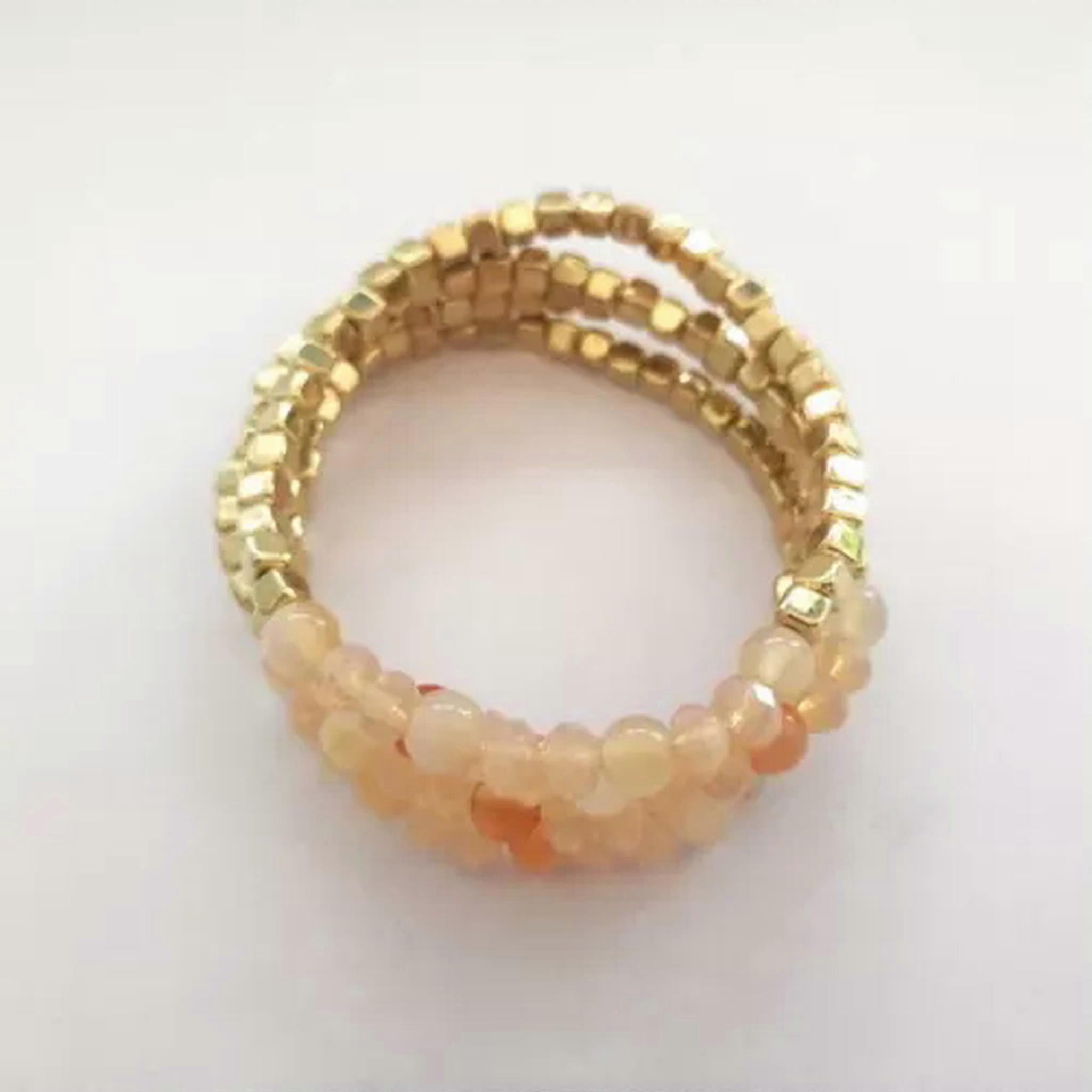 RSAMD 4pcs/set Agate Natural Stone Glass Beads Gold Cube Stretchy Summer Bracelet-Peach