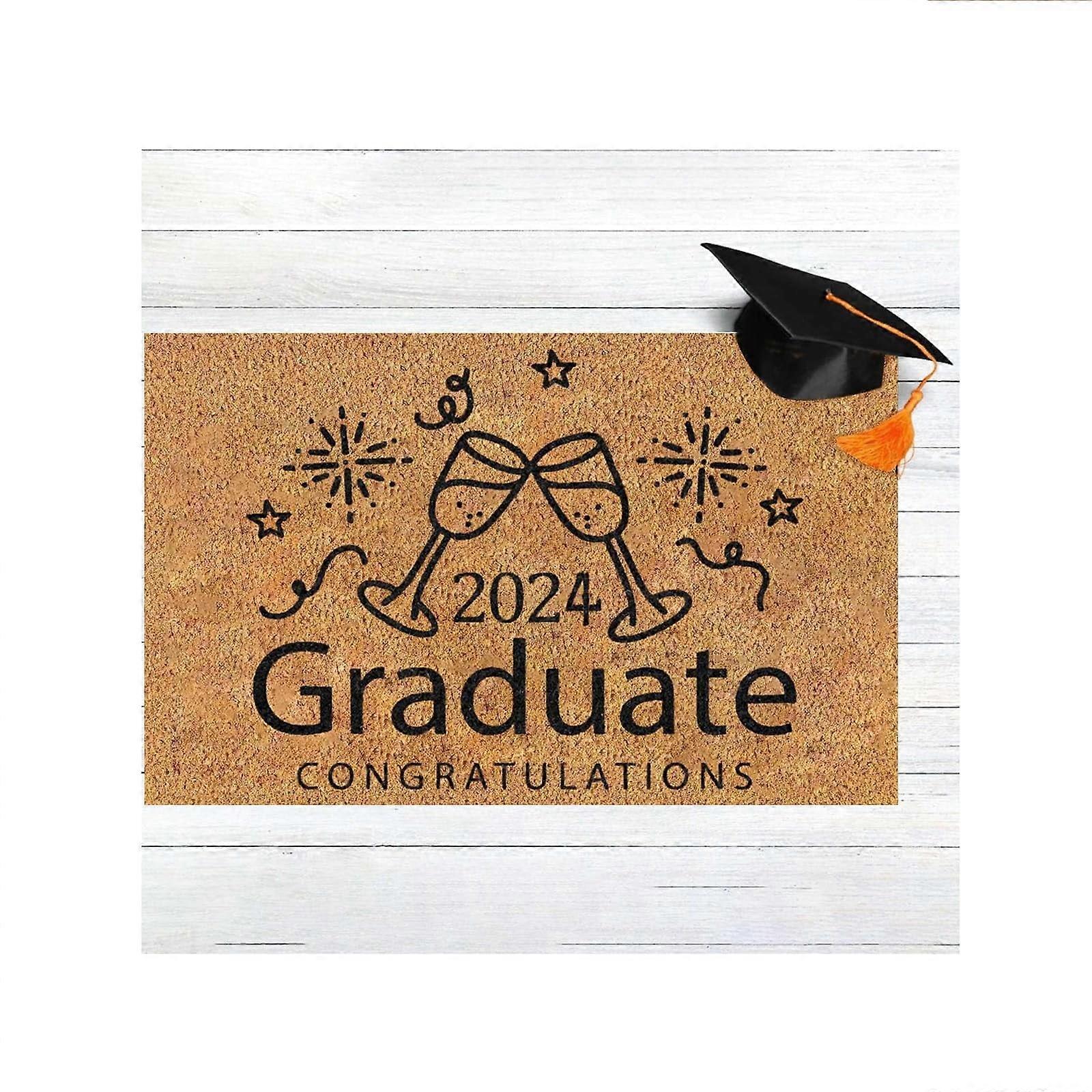 2024 Funny Door Mat Welcome Door Mat Outside Entrance Graduation Doormat Indoor Garden Decorations Brown Graduation Gifts 2024 Funny Door Mat Welcome Door Mat Outside Entrance Graduation Doormat Indoor Garden Decorations Brown Graduation Gifts About this item Funny Welcome Doormat Design: Perfect for graduation season, suitable for most front door rugs, a front door rug is a great way to welcome people into your home, with fun patterns and a springtime vibe making your front door rug a focal point for your guests! Perfect Graduation Yard Decor: Fun graduation graphic design perfect for any occasion. Interior rug for entryway features fun Graduation patterns and colors to make it look natural and bring a different design to your patio entrance decoration. Door Mat Your Floors: Keeping them clean and dry by trapping dirt and water. Our graduation rug features a low profile brown design with a Graduation pattern that resists stains and wear. The doormat makes a perfect front door rug, dirt-trapping doormat, welcome doormat, shoe mat, or entryway doormat. Easy To Clean: Stylish doormats are thick, soft and comfortable, this graduation doormat stays securely in place. This washable rug absorbs water quickly, dries quickly, can be used in the washing machine and won't peel or fade. Do not use bleach. Widely Used: This fun doormat measures 16" x 24" making it perfect for every entryway. Perfect for exterior patio entrances, camping, porch doors, garages, gardens, laundry rooms, bathrooms, living rooms, entrances or interior bedroom or kitchen doors. Packing List 1 x Door Mat Package Includes: you will receive 1 piece of graduation welcome doormat, features a distinctiveprint; The elegant design adds a touch of celebration to the graduation season while making your home, or office feel warm and welcoming; This decorative doormat can be placed at multiple locations, at your front door, back door, entrance, kitchen, laundry room, bedroom, garden, backyard, or patio, boosting the versatility of the mat Quality Material and Non Slip Convenience: this indoor welcome mat is made from imitation coconut material with a nonslip rubber backing; This ensures the mat stays securely in place, minimizing the risk of slipping, which enhances safety especially on wet or damp days; Its highly durable material can withstand heavy foot traffic and harsh weather conditions granting it a considerably long service period, also easy to clean and can be applied repeatedly Ideal Size and Broad Coverage: the class of 2024 doormat has a nice size of 16x 24 inches, a standard size that ensures ample coverage at your entrance; It serves its purpose efficiently by effectively preventing dirt from entering your home, keeping your floors spotless and clean; This capacity to control dirt at the point of entry adds to your convenience and reduces the time and effort spent on inside cleaning Easy Cleaning and Maintenance: designed with convenience in mind, the indoor outdoor mat is incredibly easy to clean; All you need to do is shake off dust, debris, or dirt, leaving it clean and attractive; This practical feature ensures that your entrance remains tidy and inviting at all times; Even if you receive the mat with creases, do not worry; The mat will regain its original flawless shape after a short while of use, thus it requires minimal maintenance Nice Gifts: this beautifully designed decorative rug makes an excellent housewarming gift or a wonderful surprise for any graduation season; It is not only practical but measures up as a fine decorative piece as well; Endow your friends and family with this nice holiday gift and let them enjoy the advantages of a clean, neat, and welcoming entrance area