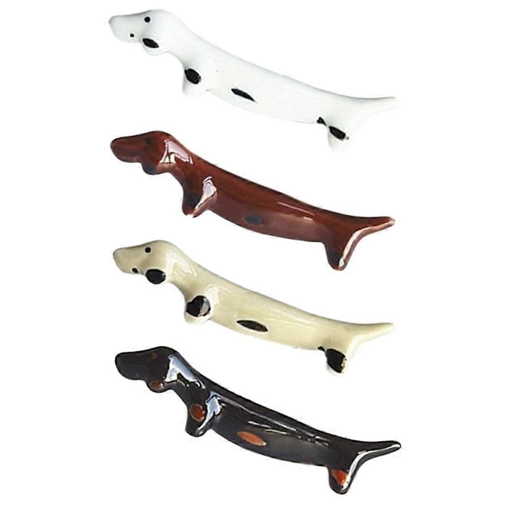 4 Pcs Japanese Cartoon Dachshund Ceramic Chopstick Holder, Compatible with Chopsticks, Dining Table Decor, Utensil Organizer